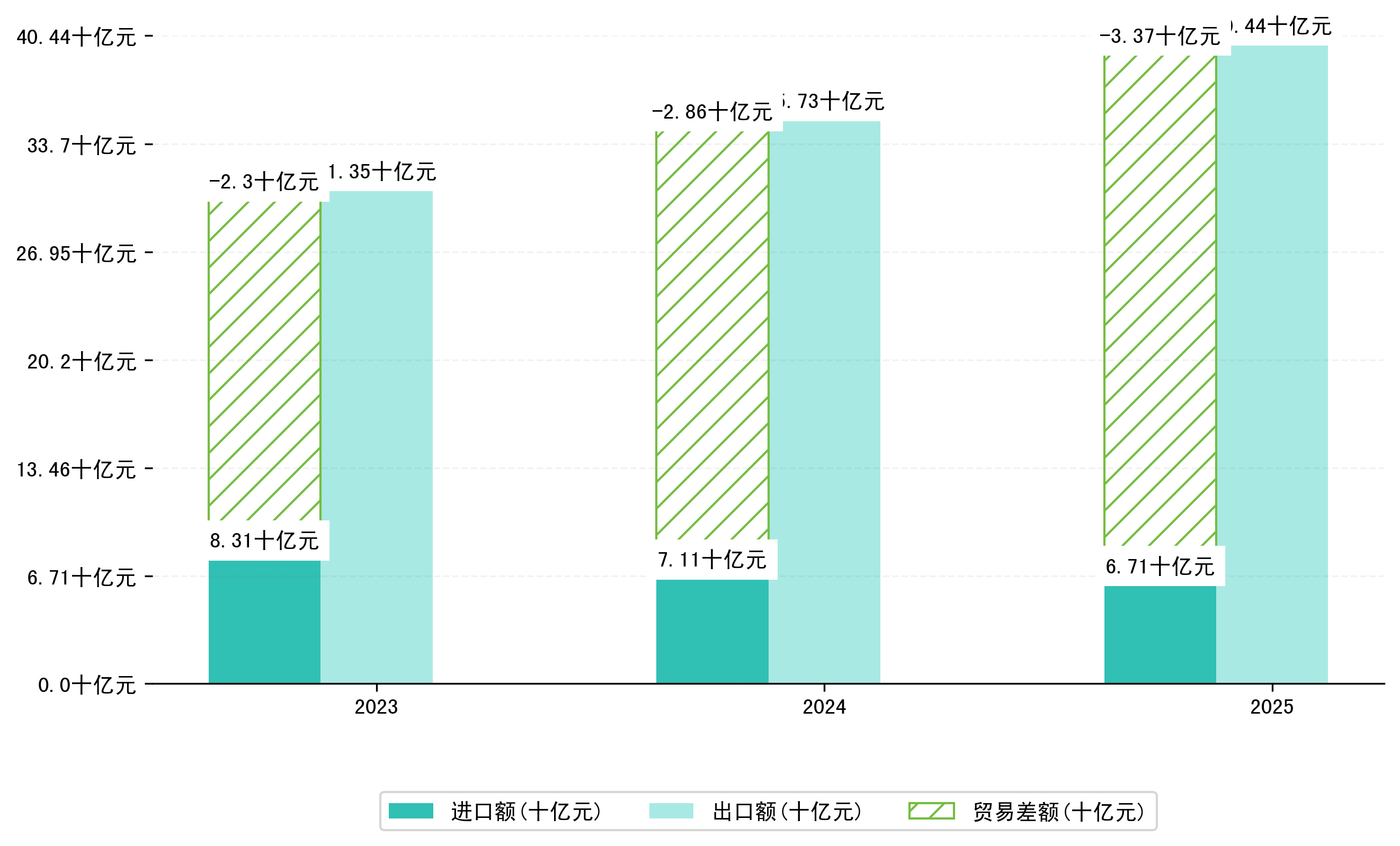 以人民币计,2025年1-3月江门市贸易差额为337,3159,3322万元(贸易顺差),相比上年同期增加了51,1666,2380万元,同比增加17.88%。