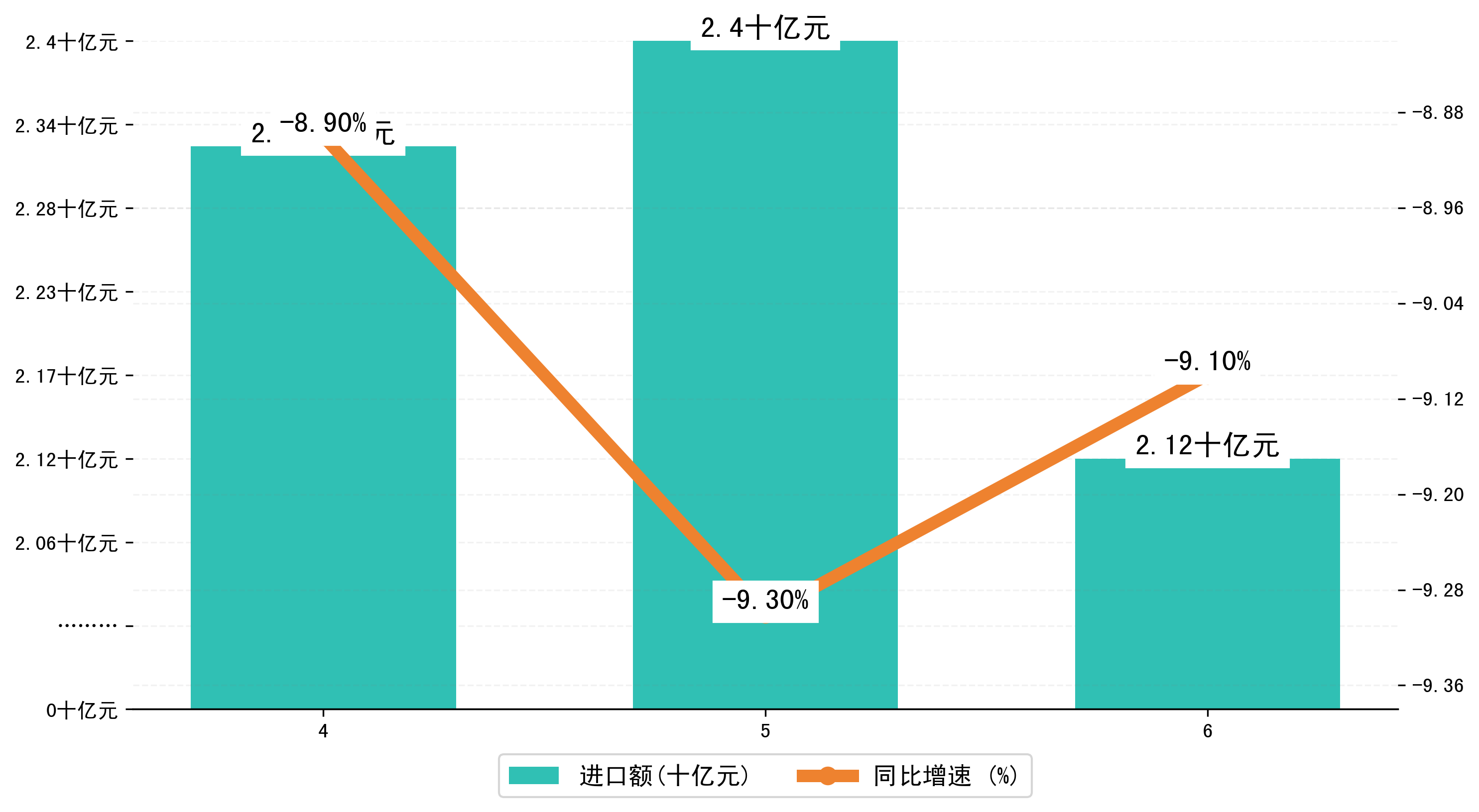 以人民币计,2025年1-6月江门市进口额为134,8739.7129万元,相比上年同期减少了13,4527.6229万元,同比减少了-9.10%。