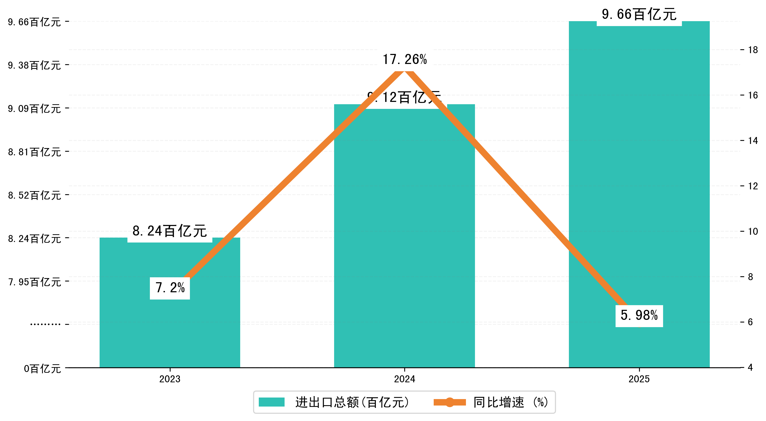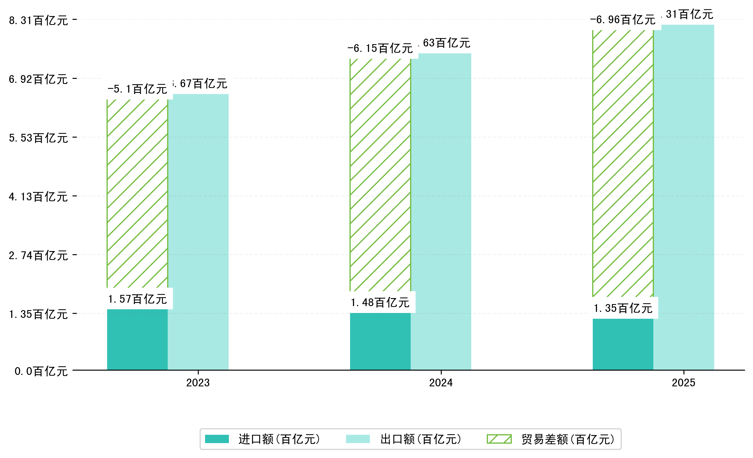 以美元计,2025年1-6月江门市贸易差额为96,8913,8384万美元(贸易顺差),相比上年同期增加了10,3183,2262万美元,同比增加11.92%。