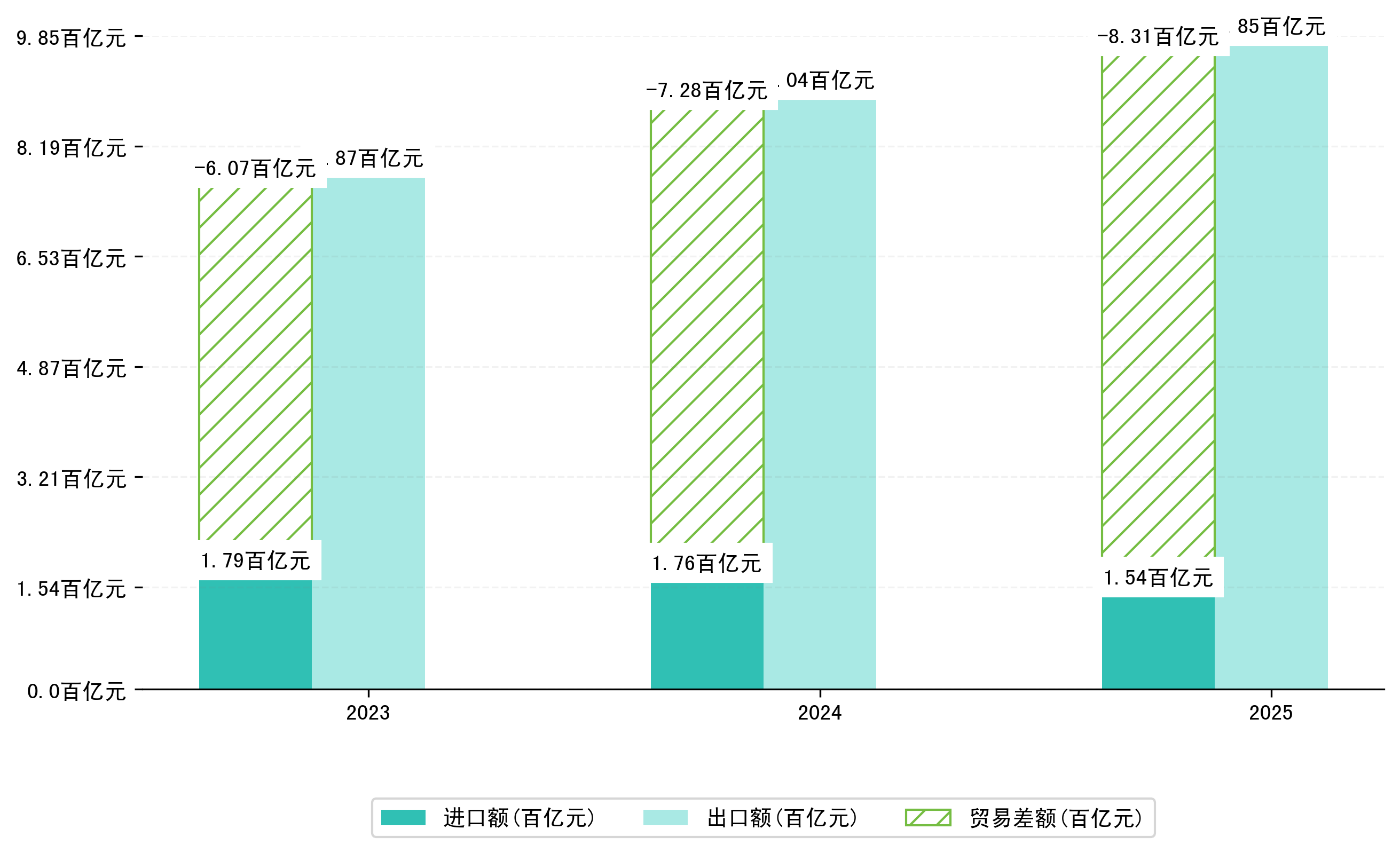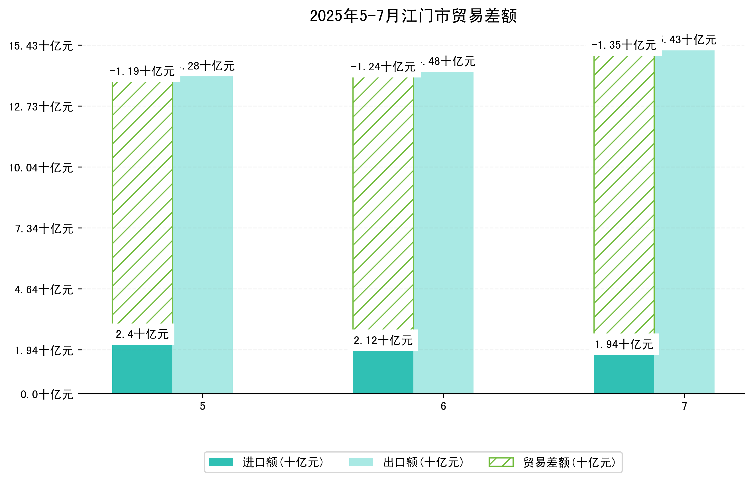 (图一:2025年5-7月江门市进出口总额)