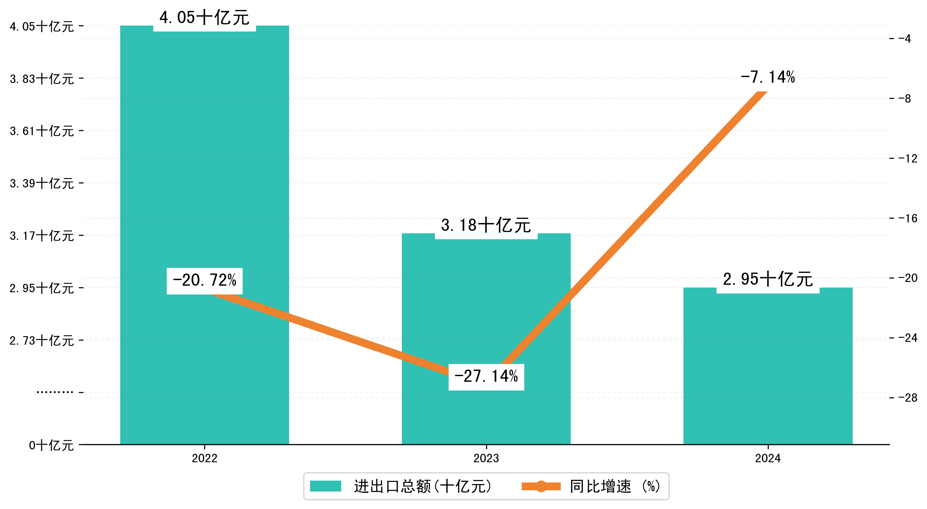 以人民币计,2024年1-6月吉林市进出口总额为29,4874.5153万元,相比上年同期减少了2,2657.5416万元,同比减少了-6.90%。