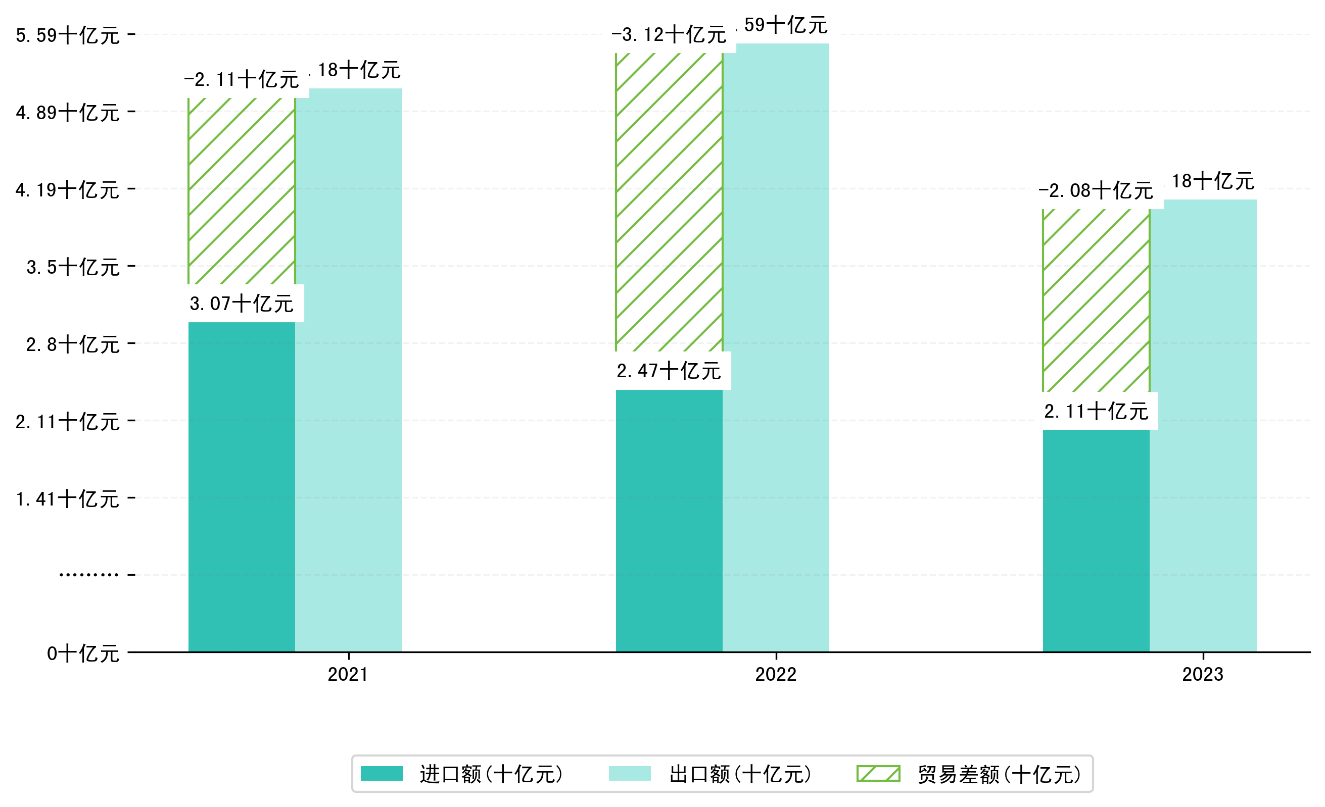 以人民币计,2023年1-12月吉林市贸易差额为20,7507,2937万元(贸易顺差),相比上年同期减少了10,4463,1655万元,同比减少-33.48%。
