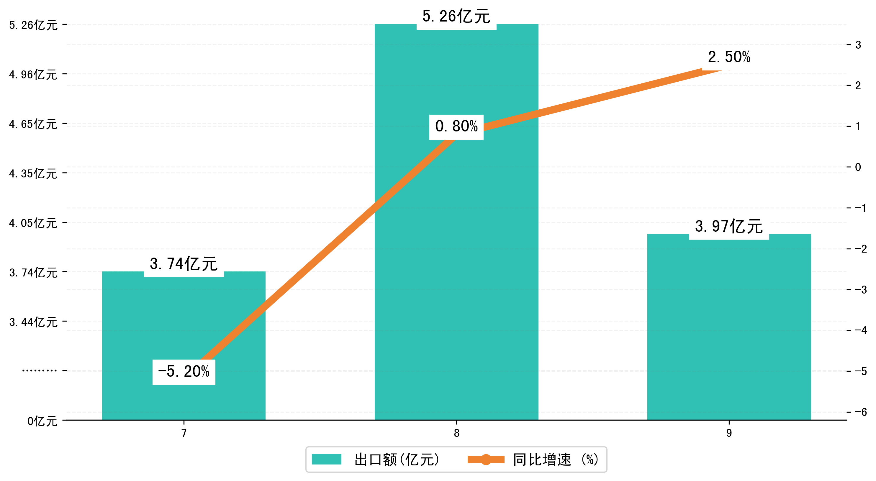 一、2024年9月吉林市单月出口总额及进出口差额统计分析