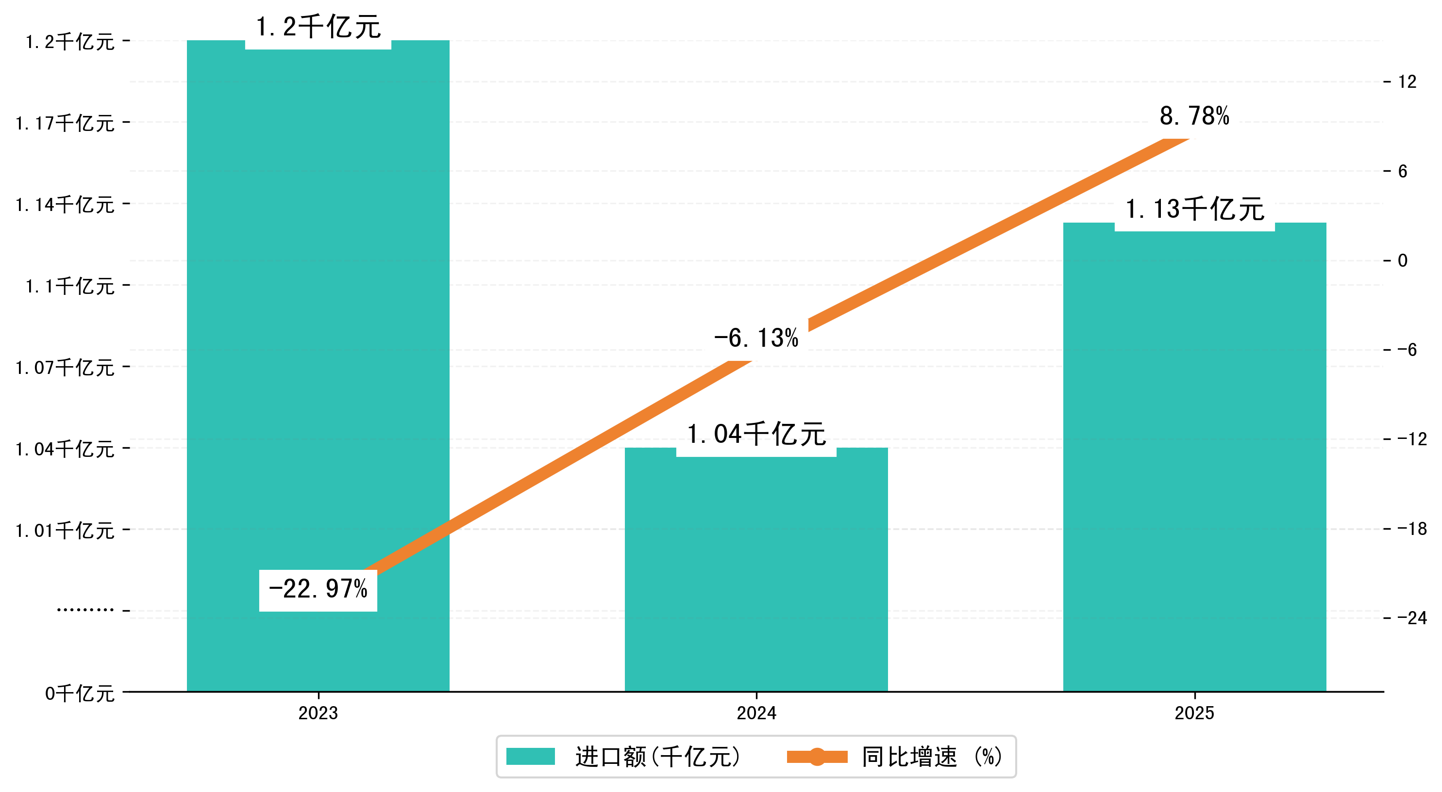 以人民币计,2025年1-6月重庆市进口额为1129,7582.4129万元,相比上年同期增加了91,1733.9027万元,同比增加了9.10%。