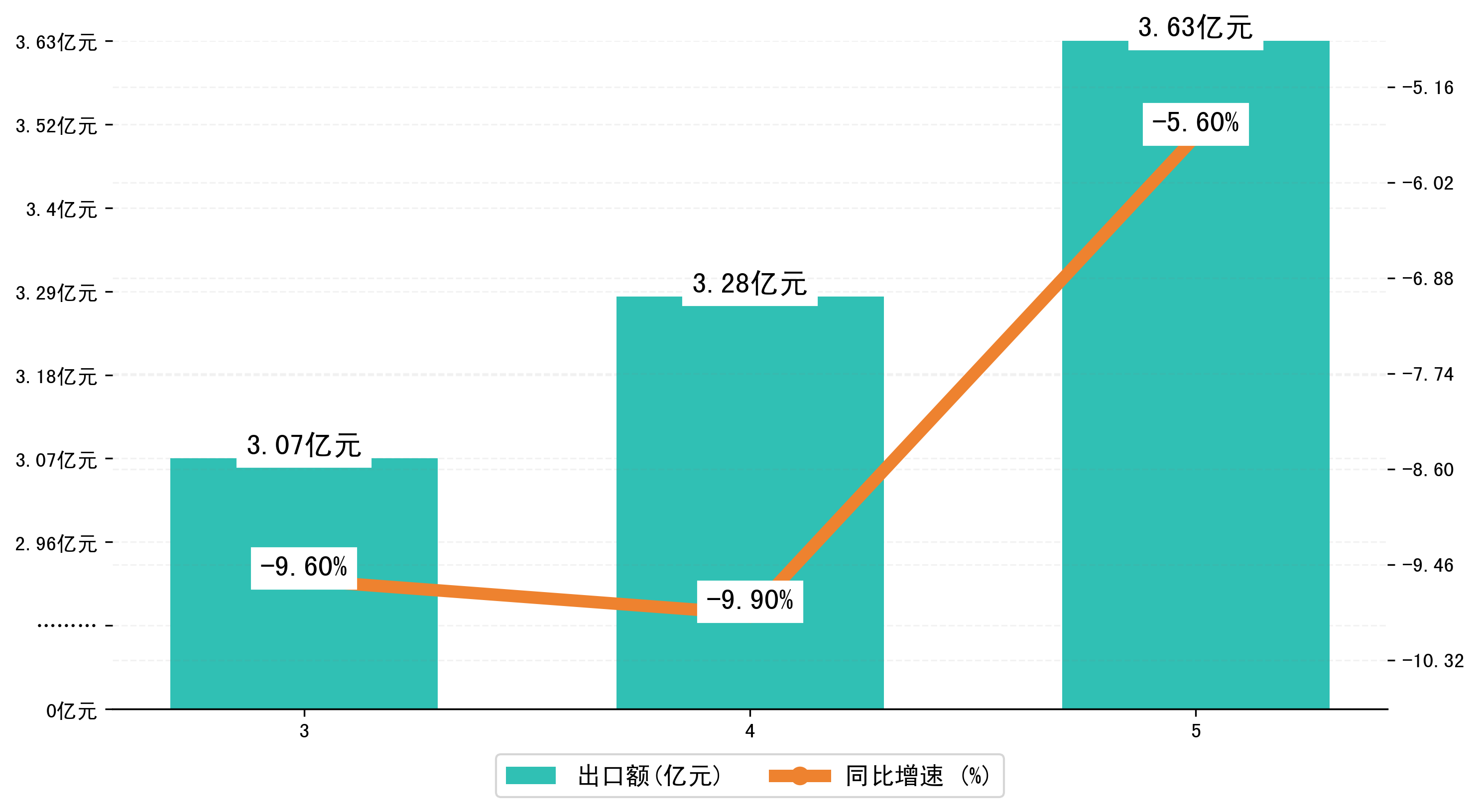 以美元计,2024年5月吉林市出口额为5108.8328万美元,相比上月增加了486.0738万美元;相比上年同期增加了447.1547万美元,同比减少-8.90%。