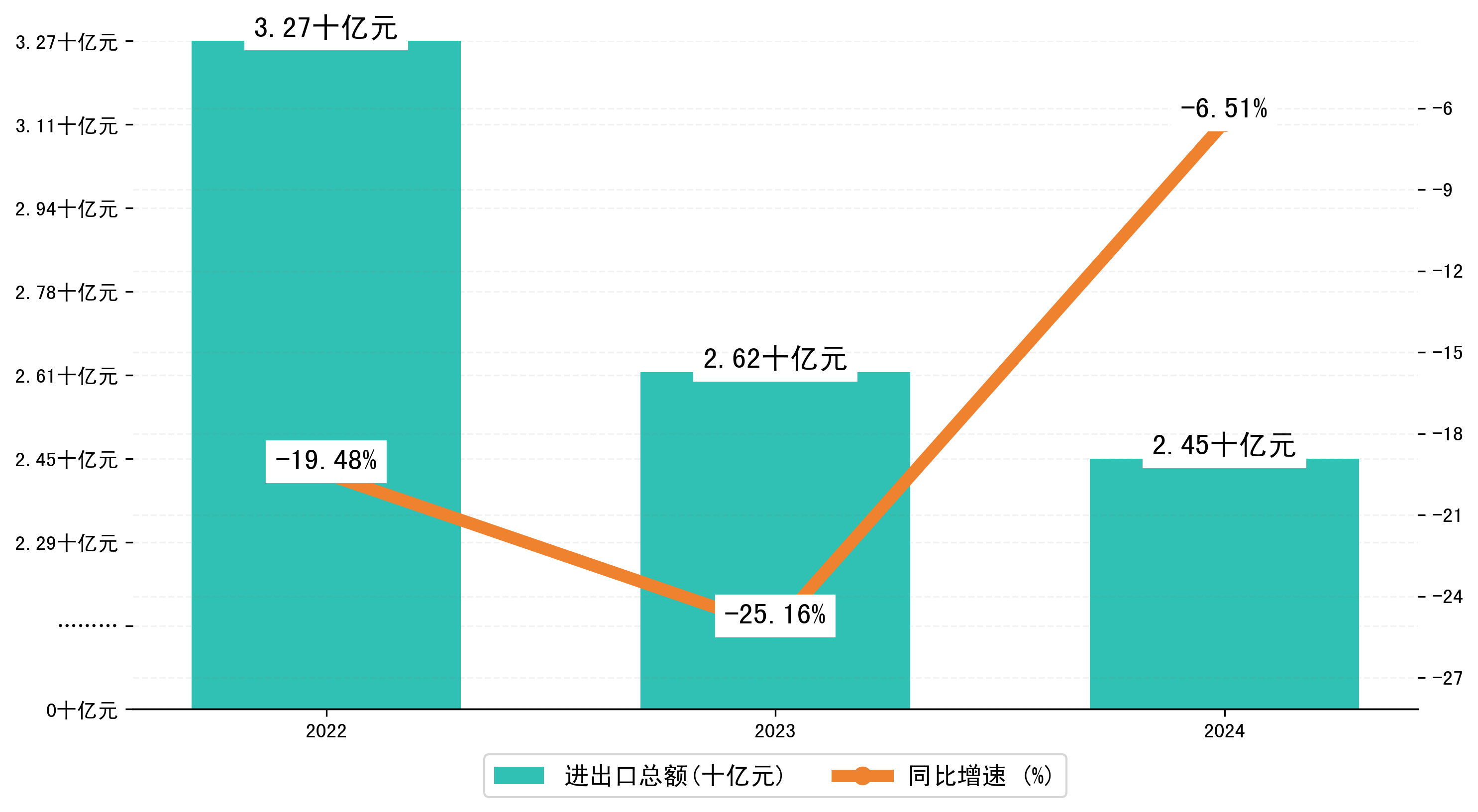 以人民币计,2024年1-5月吉林市进出口总额为24,5011.4885万元,相比上年同期减少了1,7052.2493万元,同比减少了-6.30%。