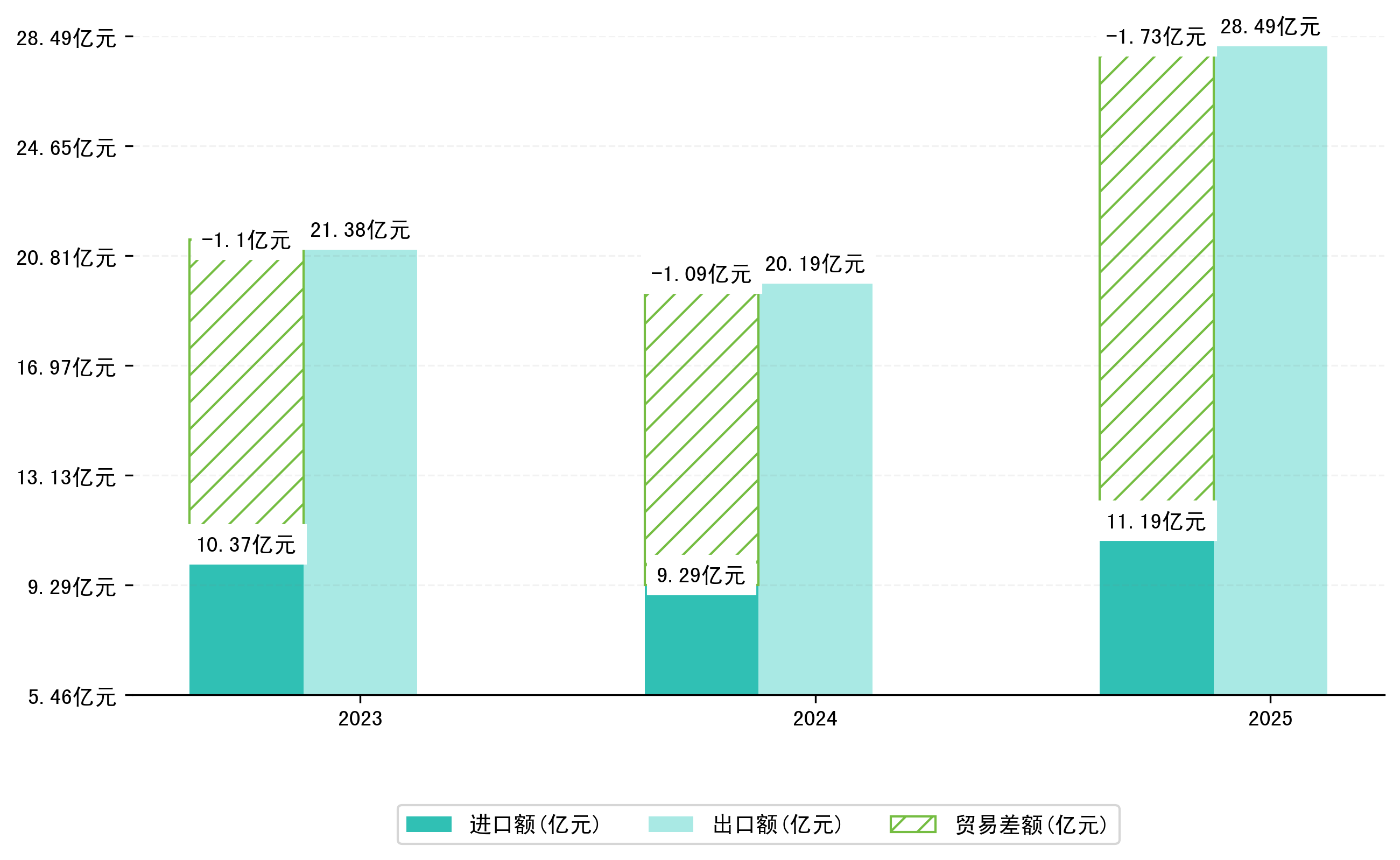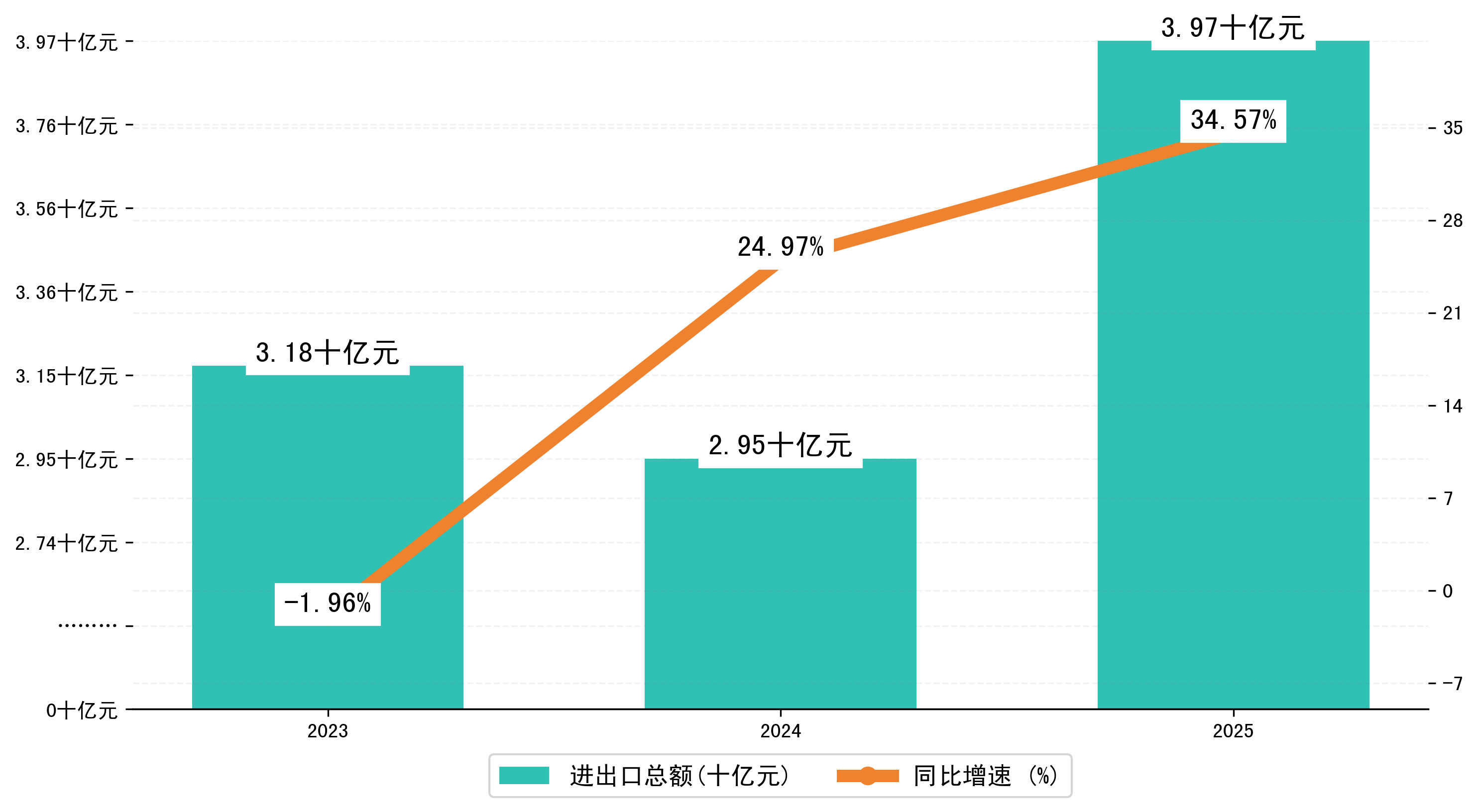 以人民币计,2025年1-6月吉林市贸易差额为17,2989,3955万元(贸易顺差),相比上年同期增加了6,4010,4963万元,同比增加58.74%。