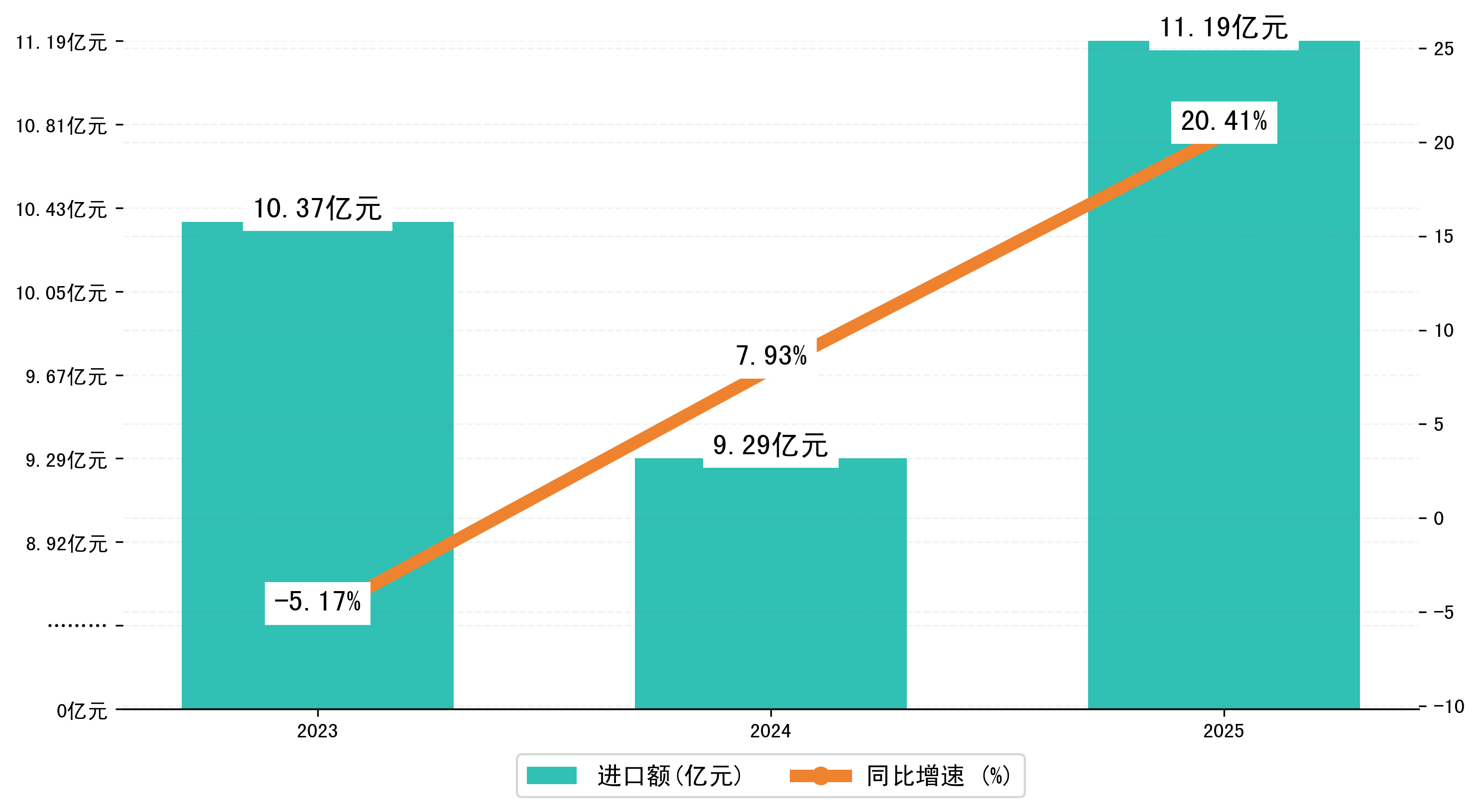 以美元计,2025年1-6月吉林市进口额为1,5582.5464万美元,相比上年同期增加了2495.802万美元,同比增加17.50%。