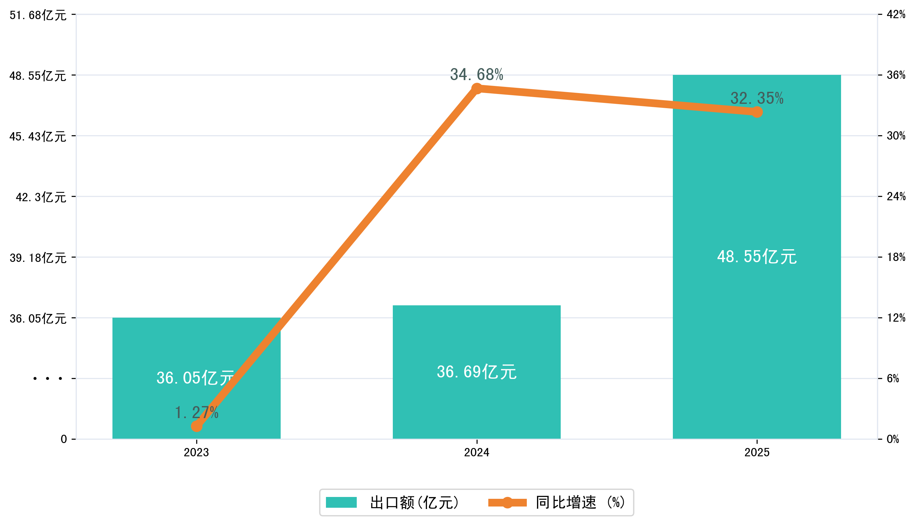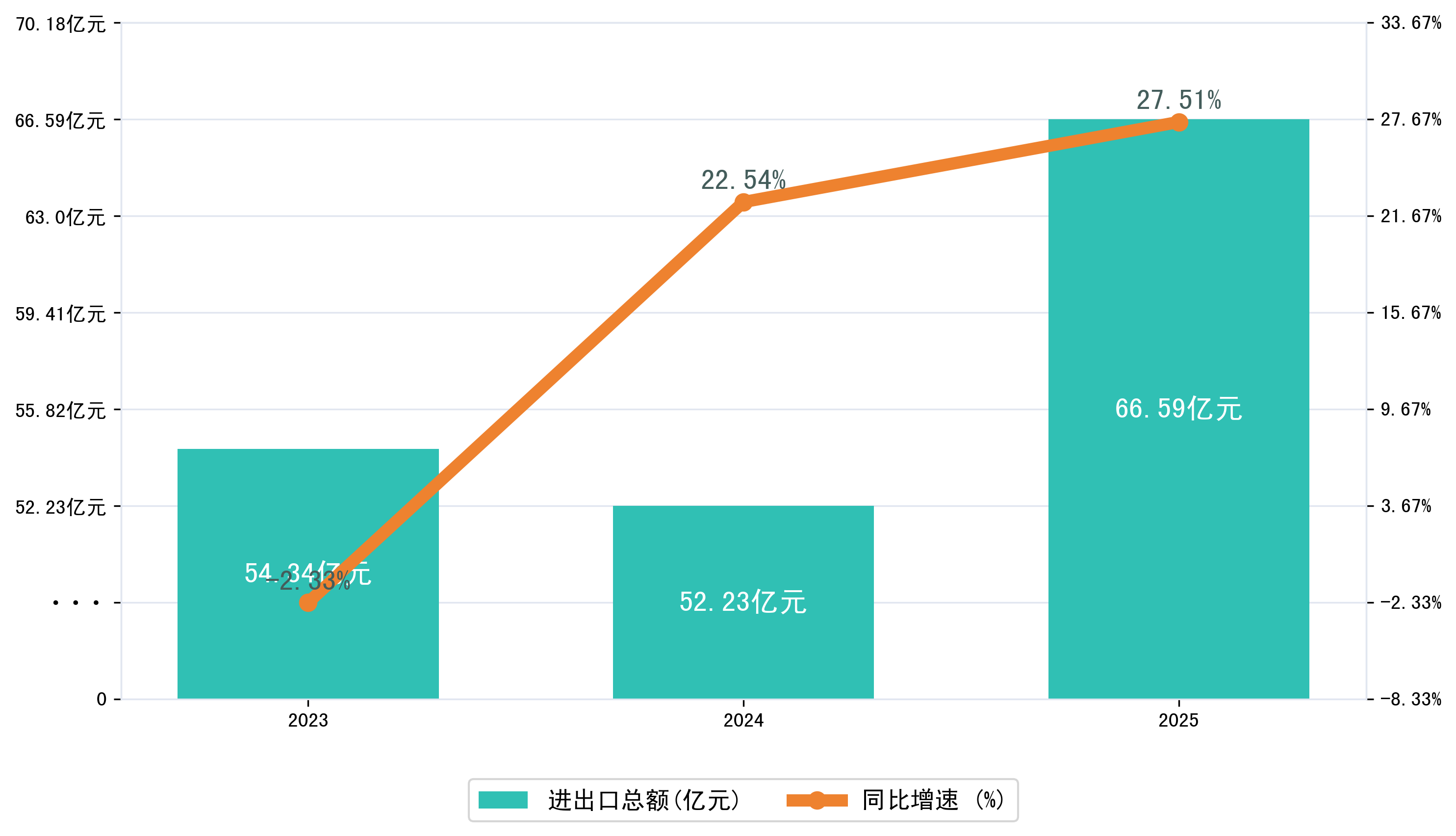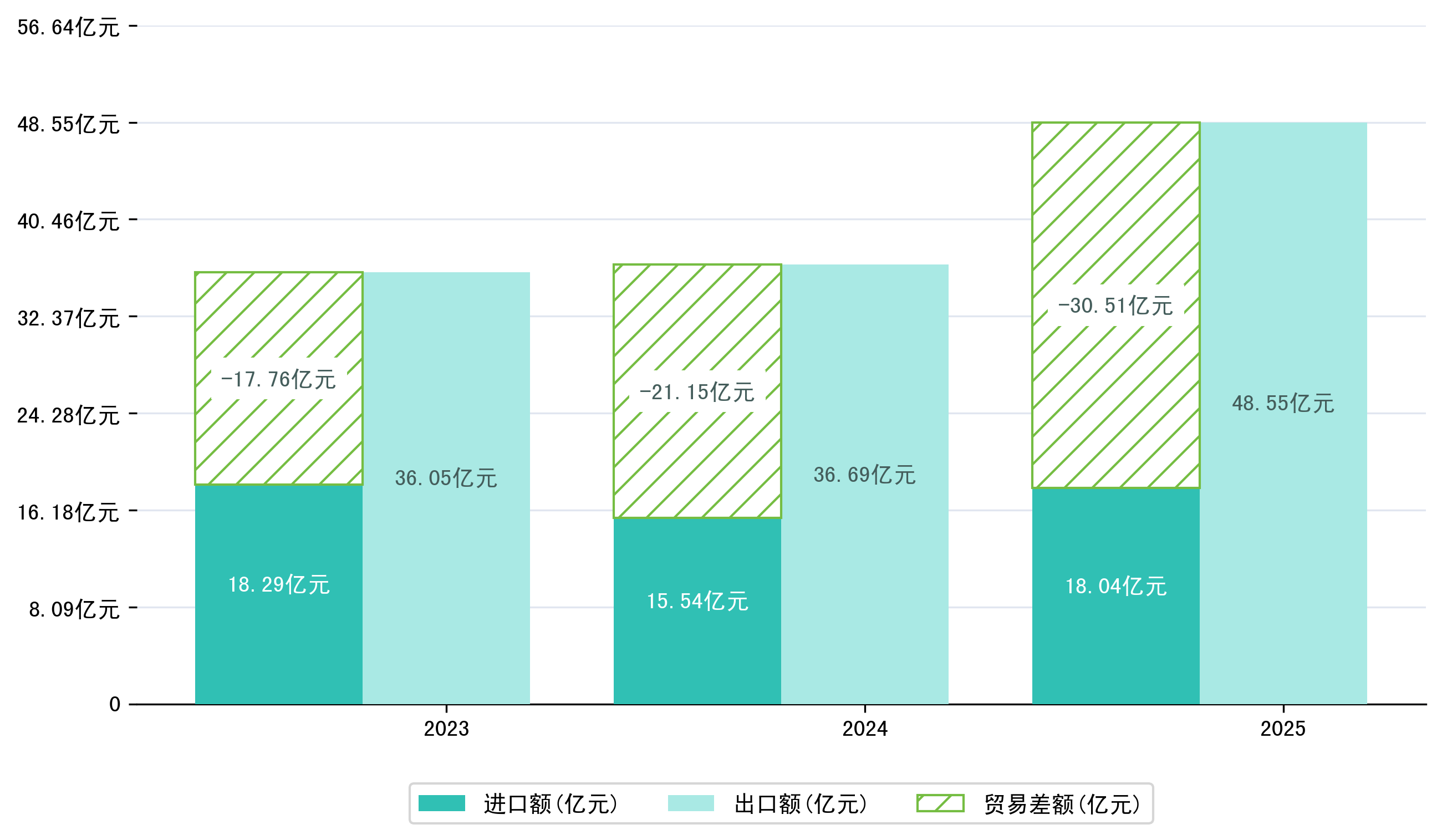 以人民币计,2025年1-10月吉林市贸易差额为30,5121,6972万元(贸易顺差),相比上年同期增加了9,3671,6705万元,同比增加44.3%。