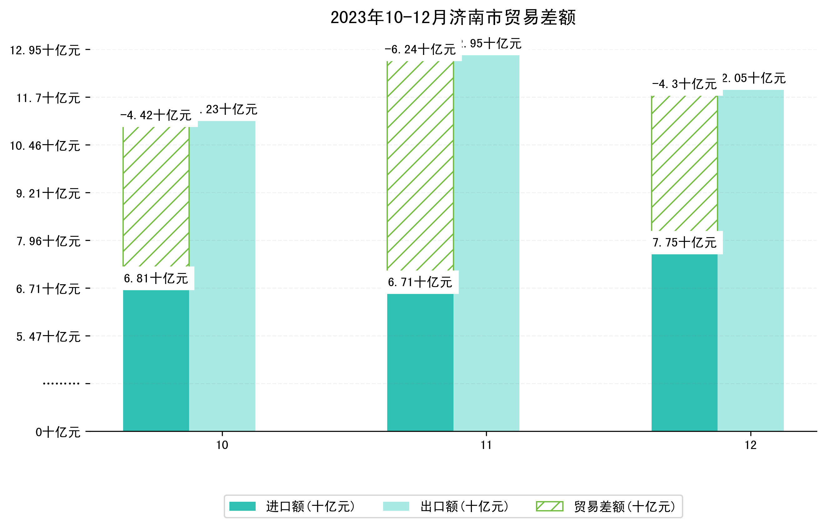 (图四:2023年10-12月济南市贸易差额)