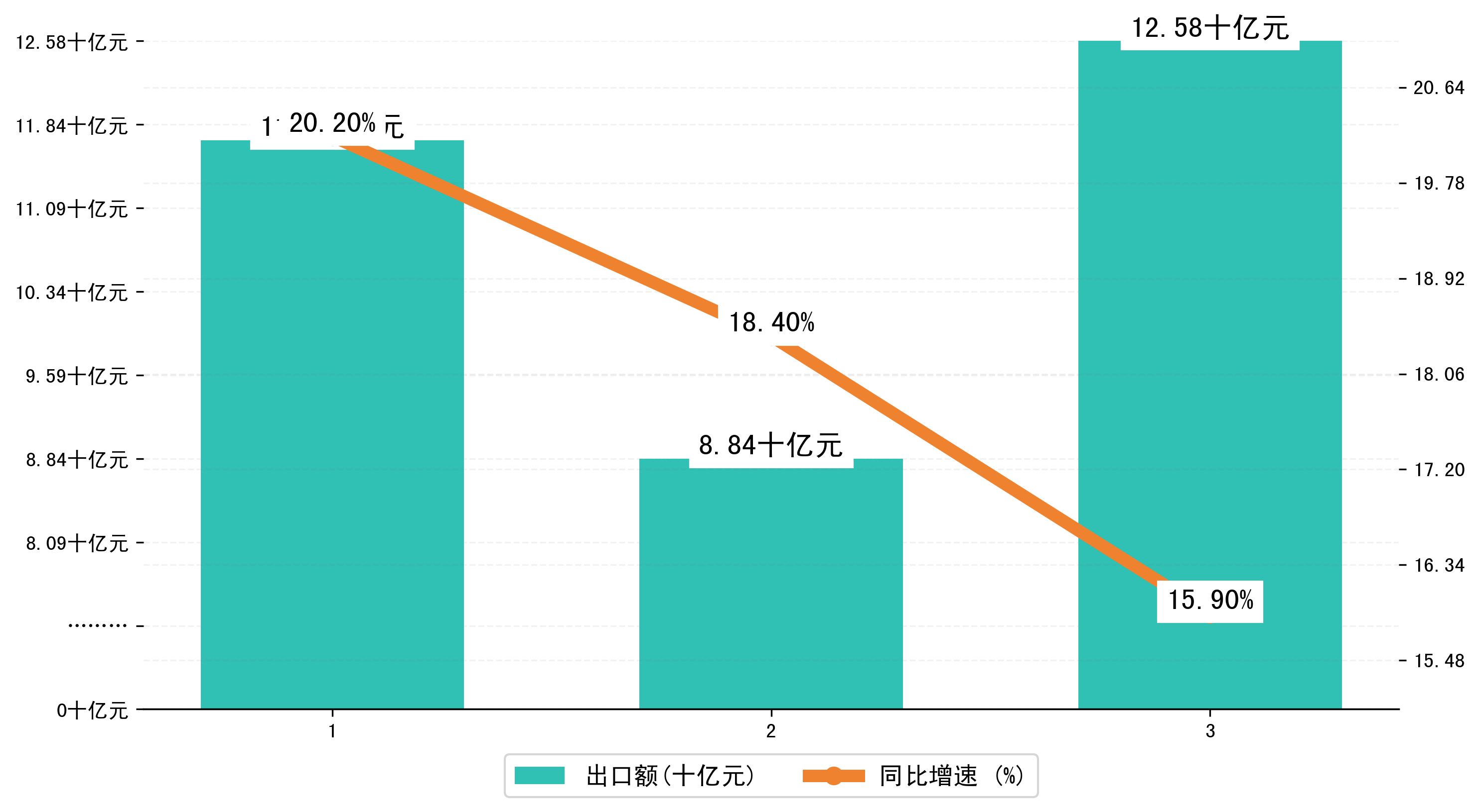 以人民币计,2024年1-3月济南市出口额为331,2139.2777万元,相比上年同期增加了17,6156.1078万元,同比增加了15.90%。