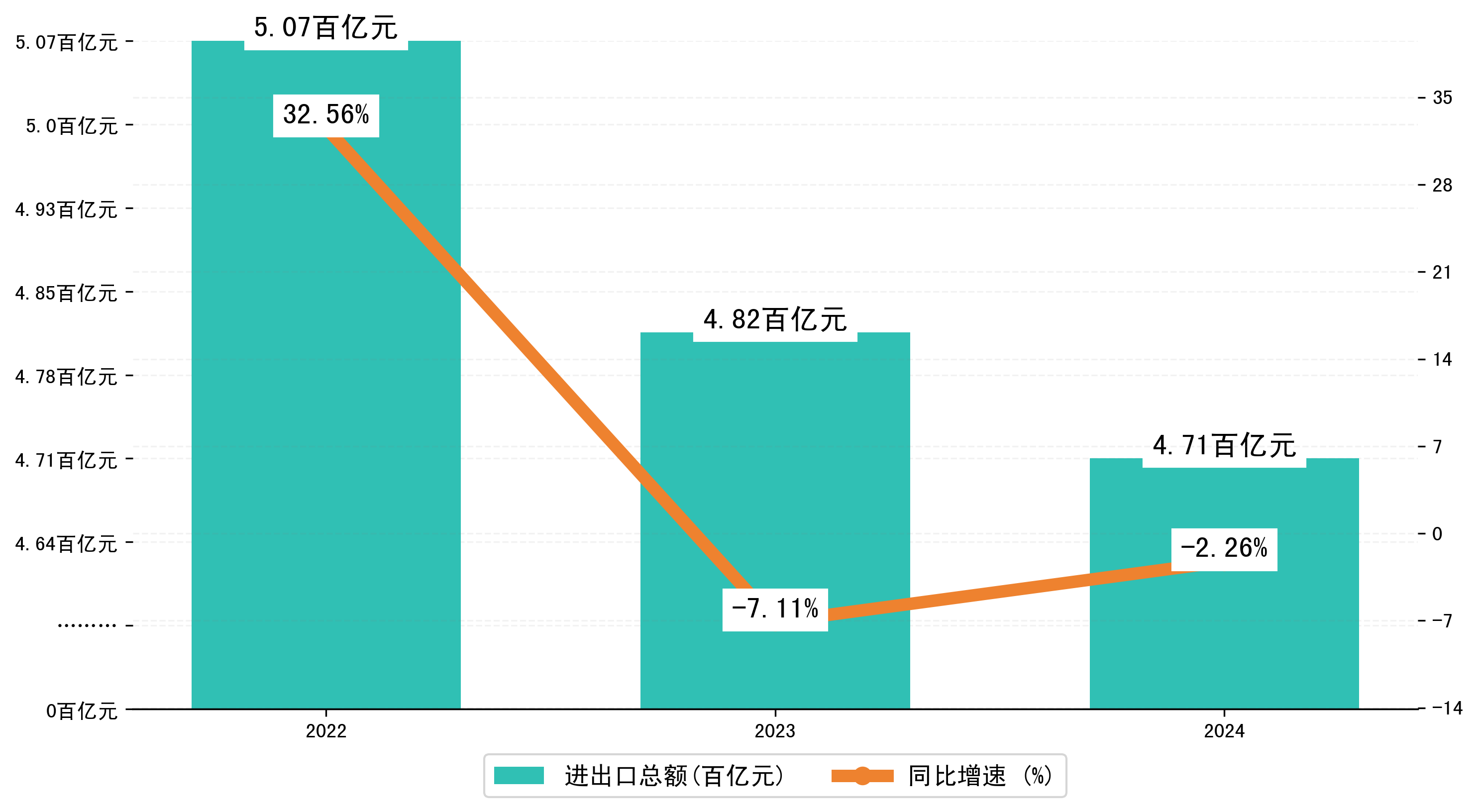 以人民币计,2024年1-3月济南市进出口总额为471,0233.7432万元,相比上年同期减少了10,8879.2429万元,同比增加了5.30%。