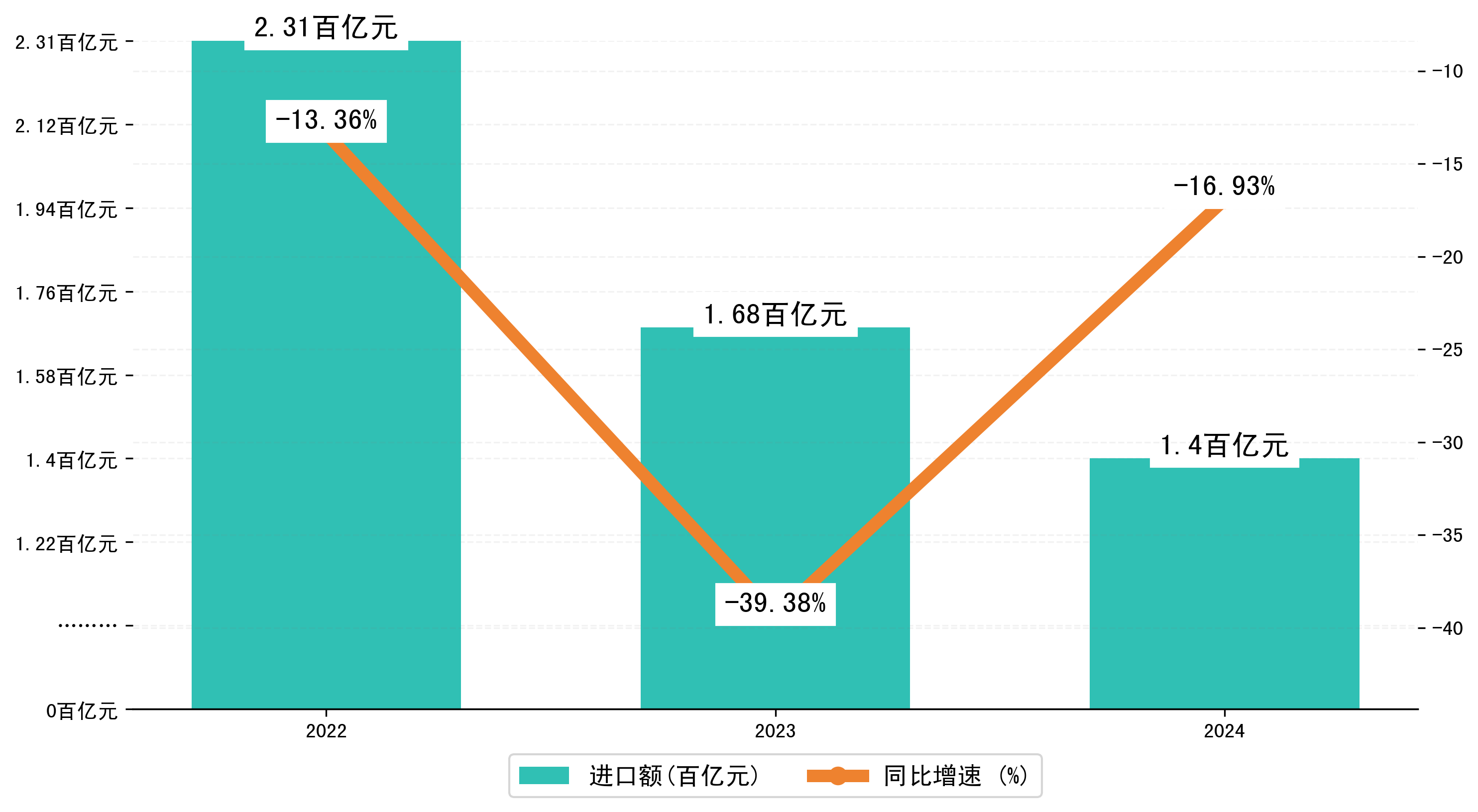 以人民币计,2024年1-3月济南市进口额为139,8094.4654万元,相比上年同期减少了28,5035.3508万元,同比减少了-13.50%。