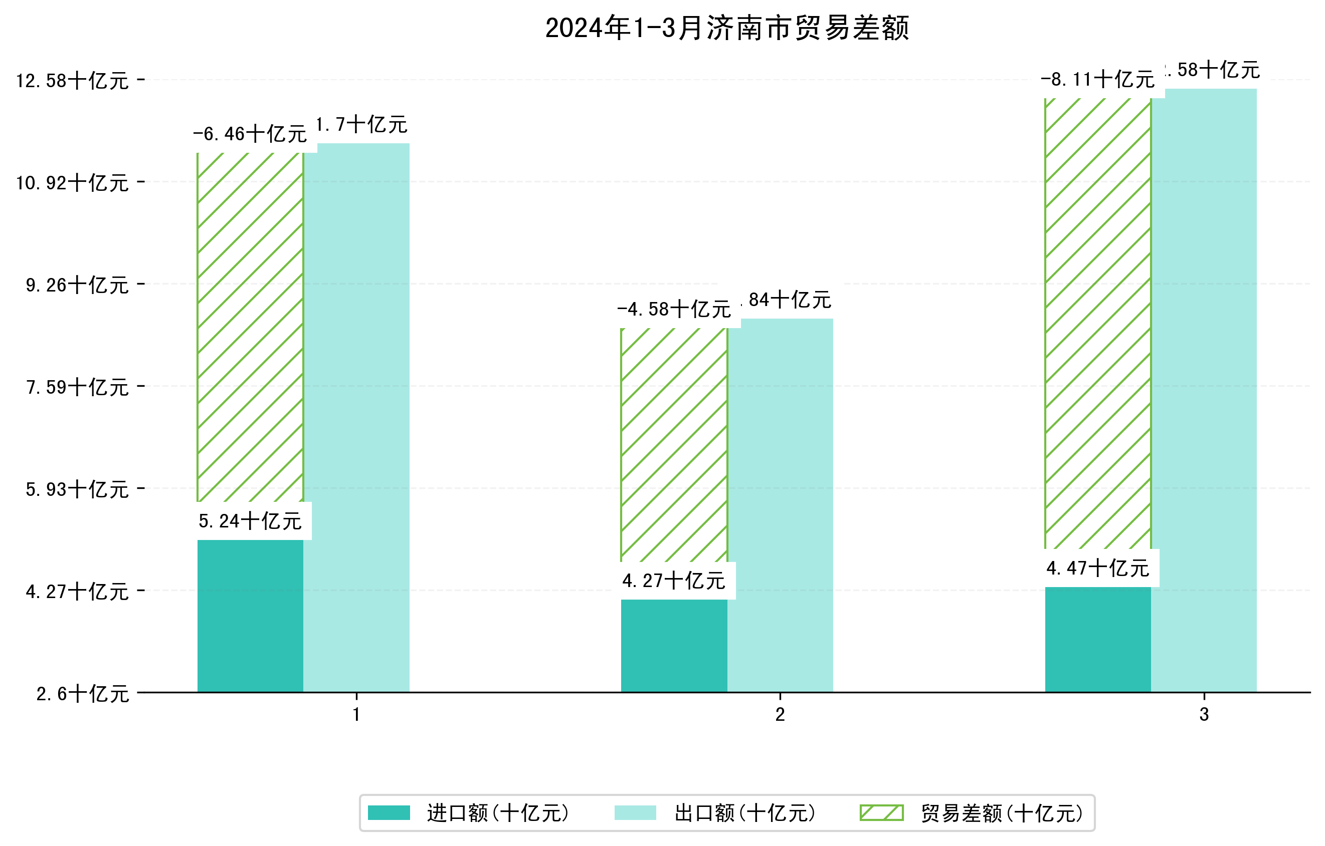 以美元计,2024年1-3月济南市贸易差额为26,9245,9223万美元(贸易顺差),相比上年同期增加了5,7649,4722万美元,同比增加27.25%。