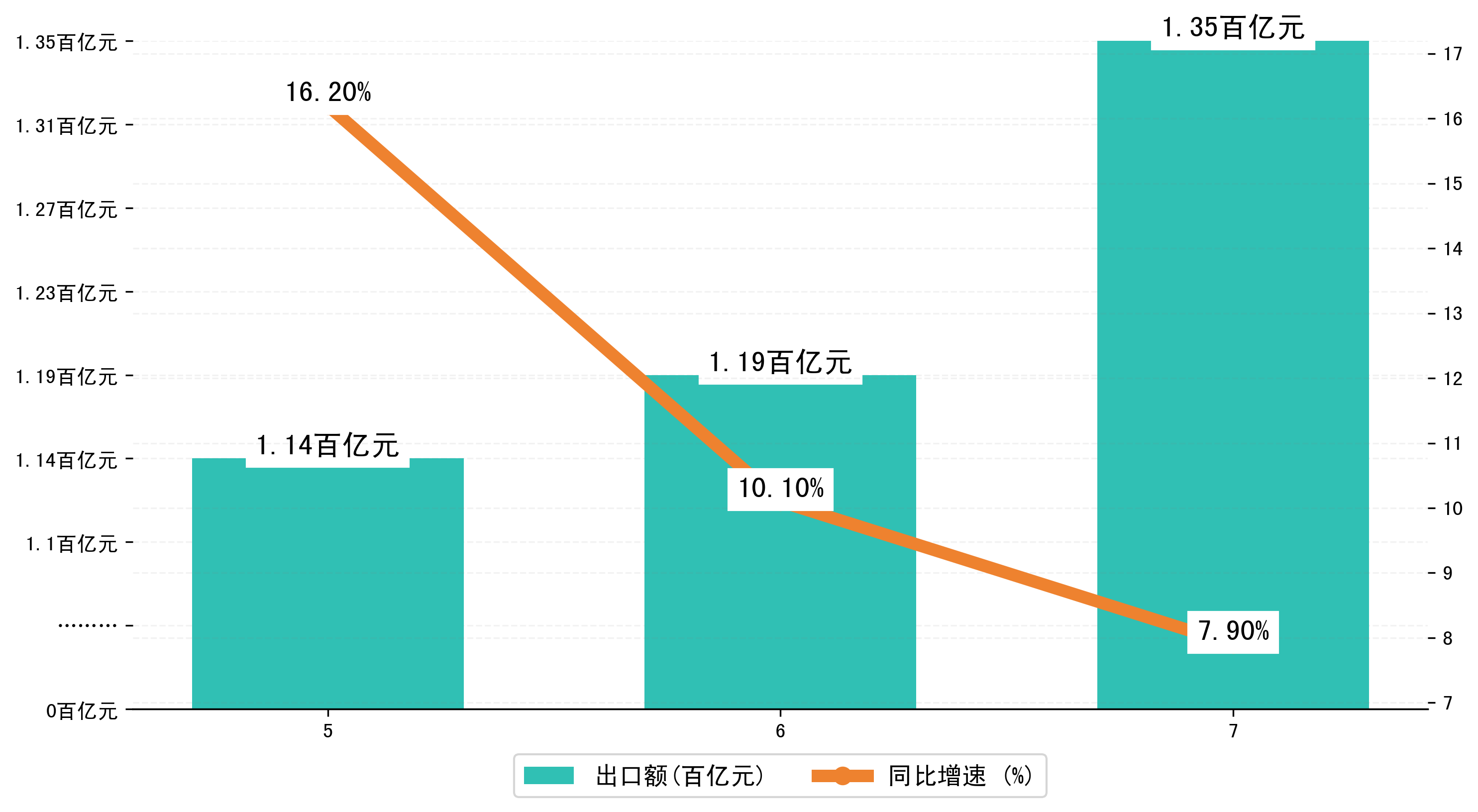 (图二:2023年5-7月济南市出口额)