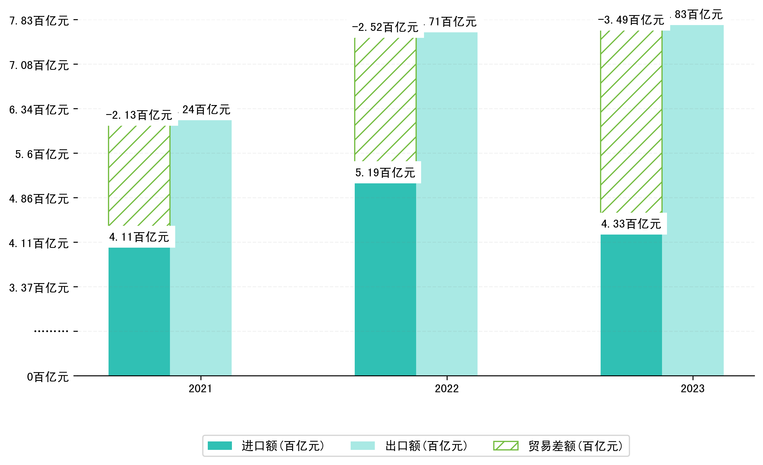 (图八:2021-2023年1-7月济南市累计贸易差额)
