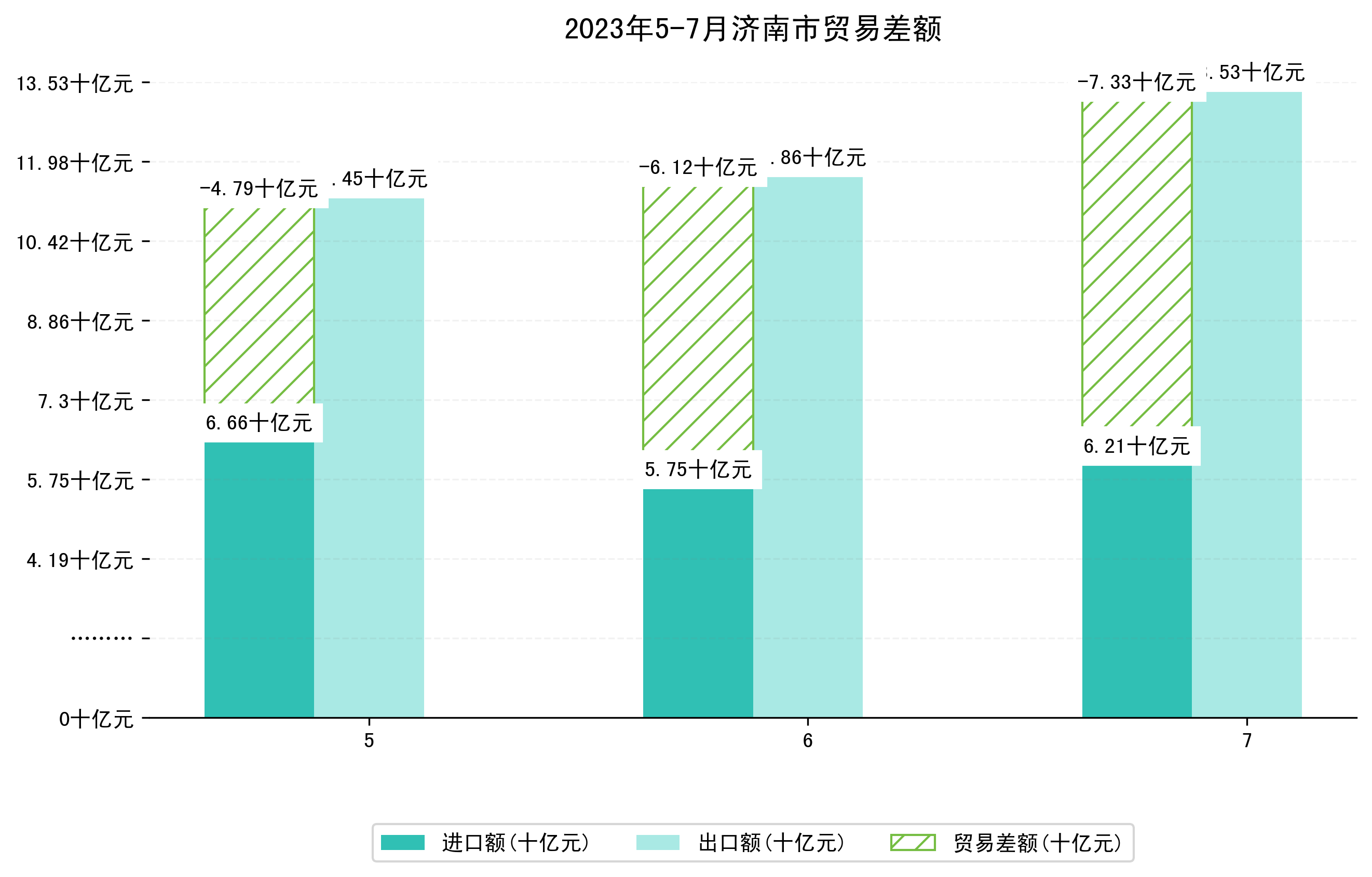 (图一:2023年5-7月济南市进出口总额)