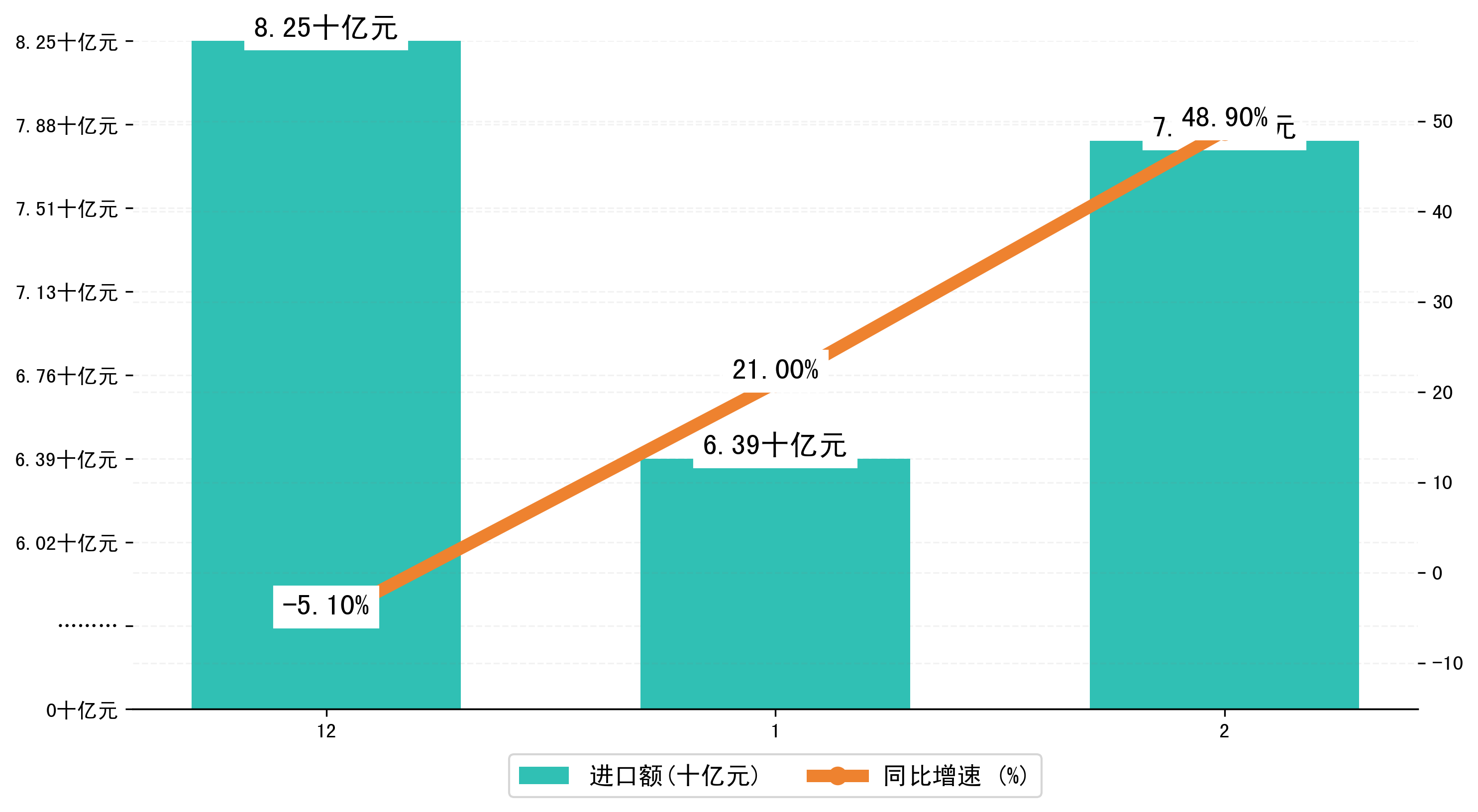 以美元计,2025年2月济南市进口额为10,8678.9147万美元,相比上月增加了1,9839.216万美元;相比上年同期增加了4,8688.6013万美元,同比增加47.10%。