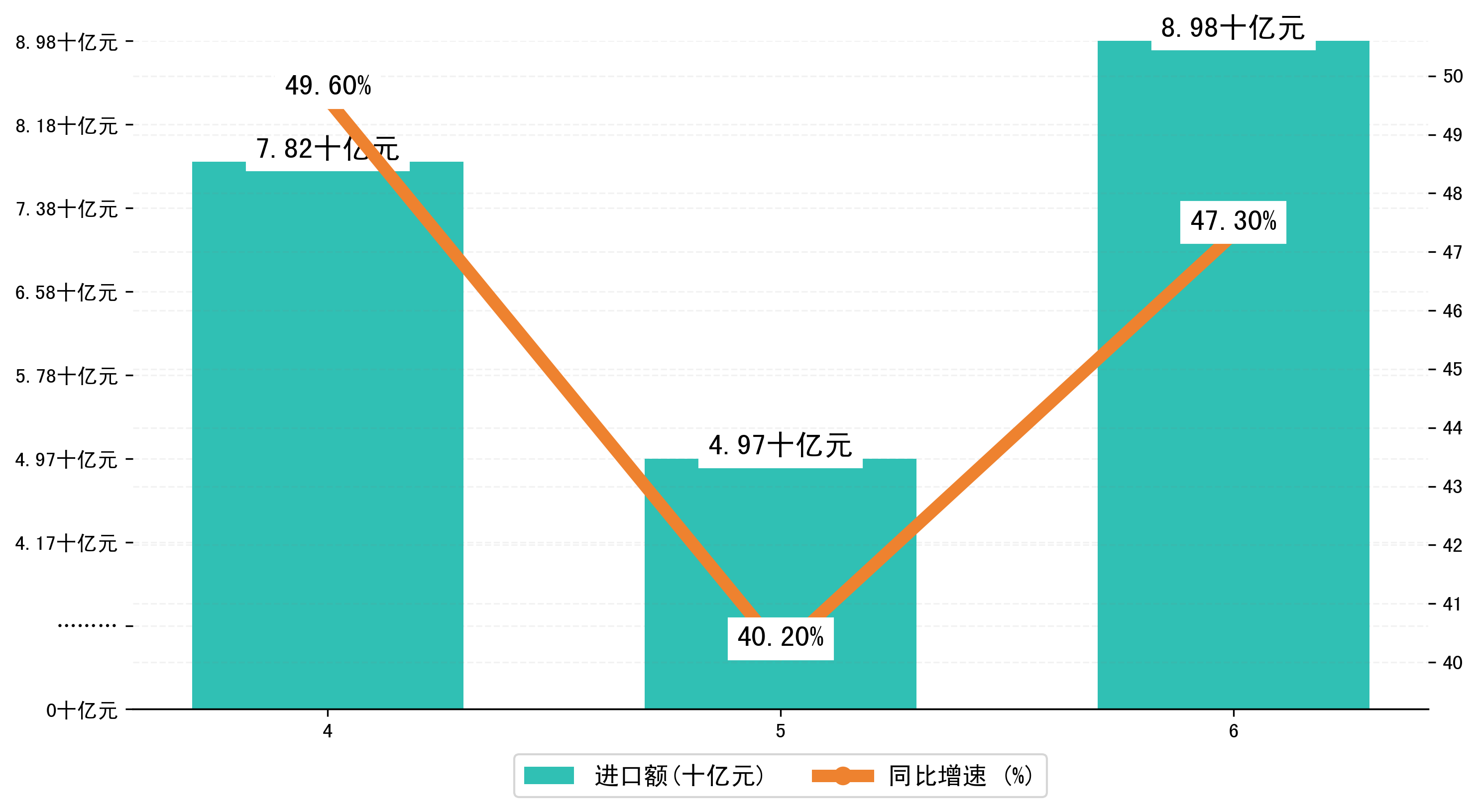以人民币计,2025年6月济南市进口额为89,8231.7425万元,相比上月增加了40,0751.4508万元;相比上年同期增加了40,0235.1379万元,同比增加了47.30%。
