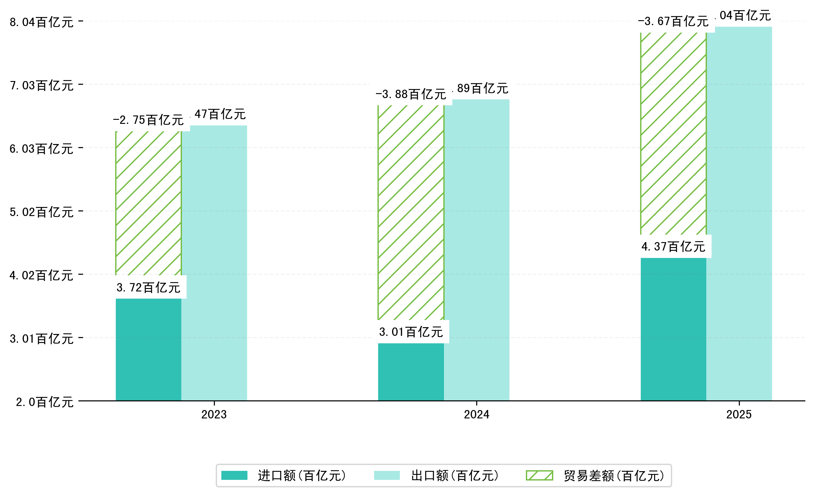 以美元计,2025年1-6月济南市贸易差额为51,0895,7447万美元(贸易顺差),相比上年同期减少了3,4610,9920万美元,同比减少-6.34%。