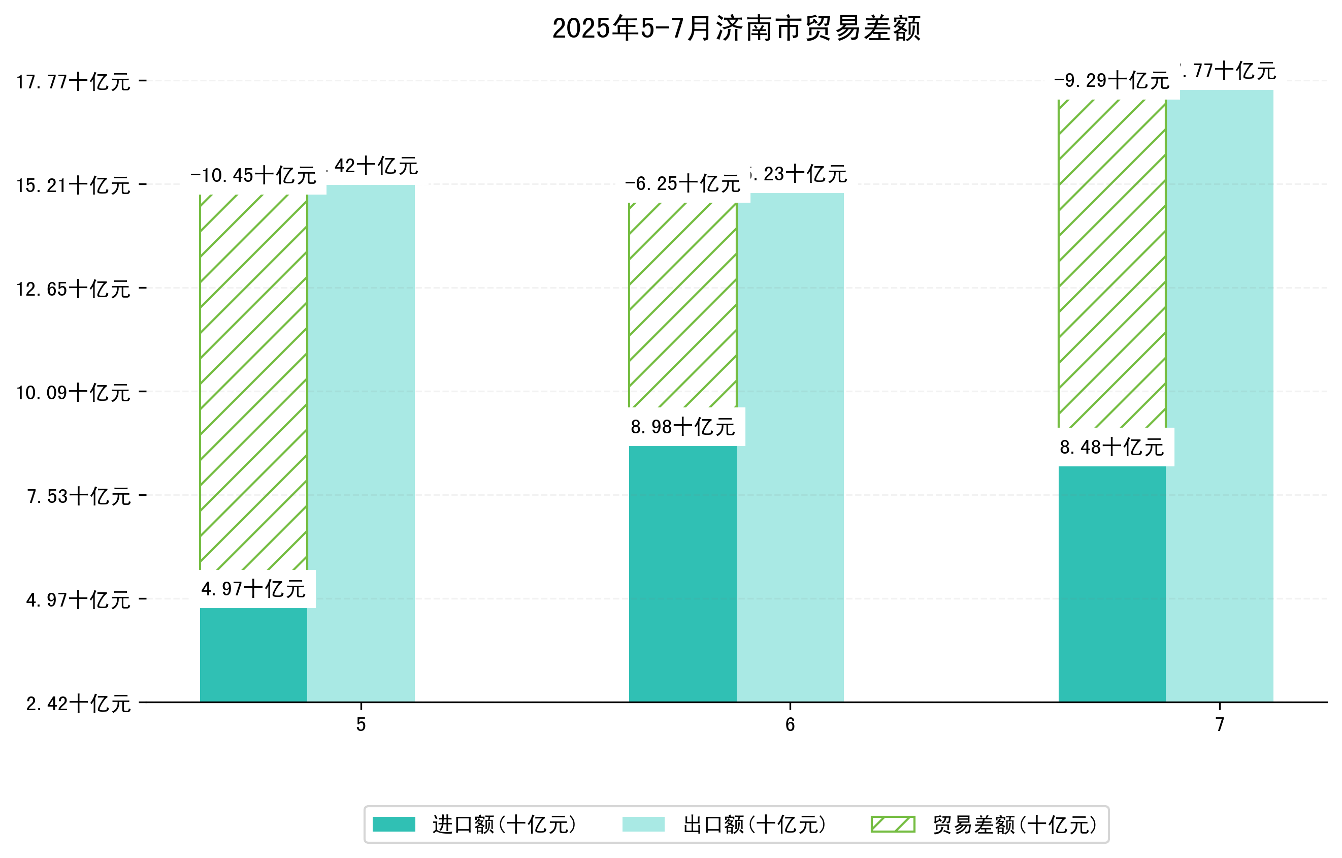 一、2025年7月济南市单月出口总额及进出口差额统计分析