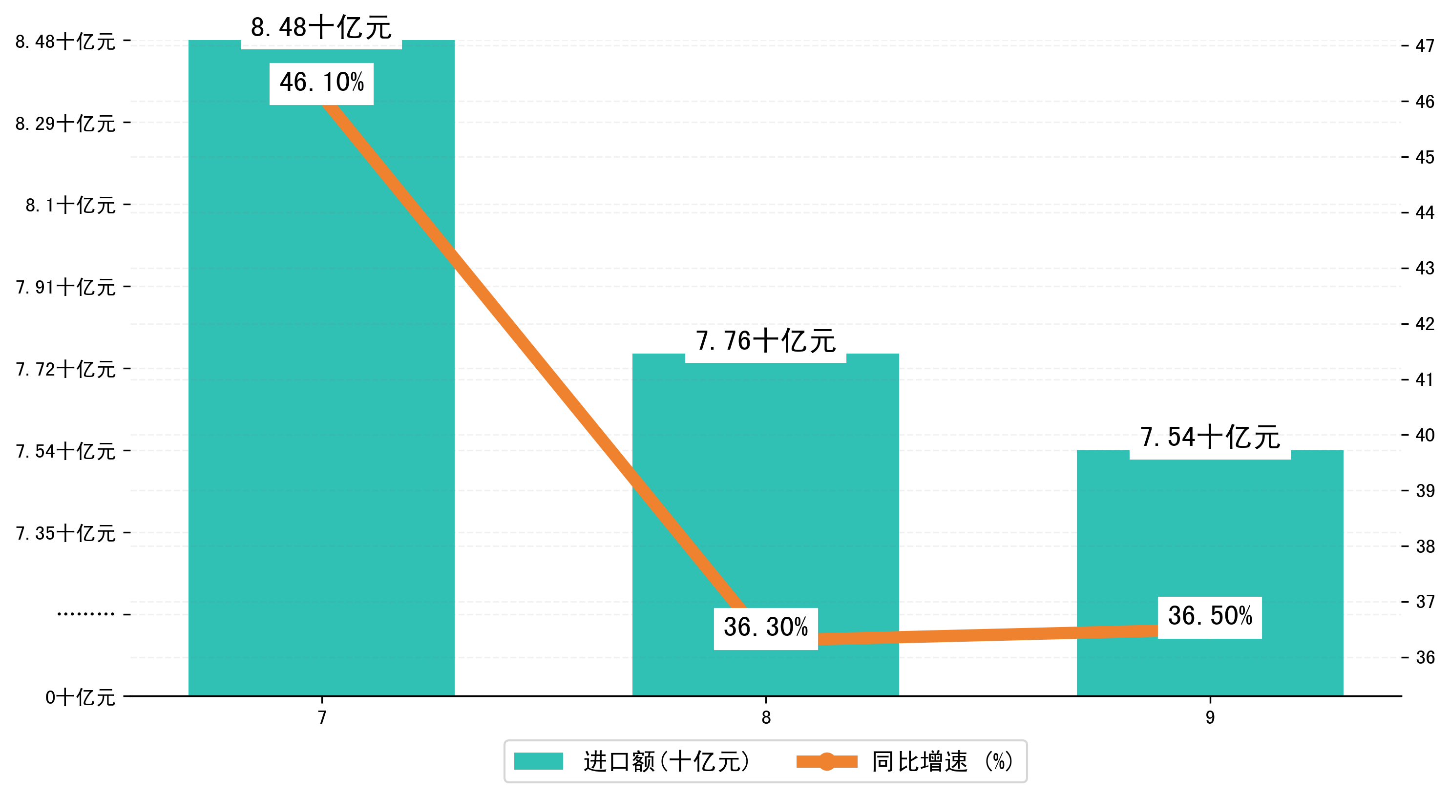 以人民币计,2025年9月济南市进口额为75,3686.6603万元,相比上月减少了2,2118.0403万元;相比上年同期增加了21,1236.5083万元,同比增加了36.50%。