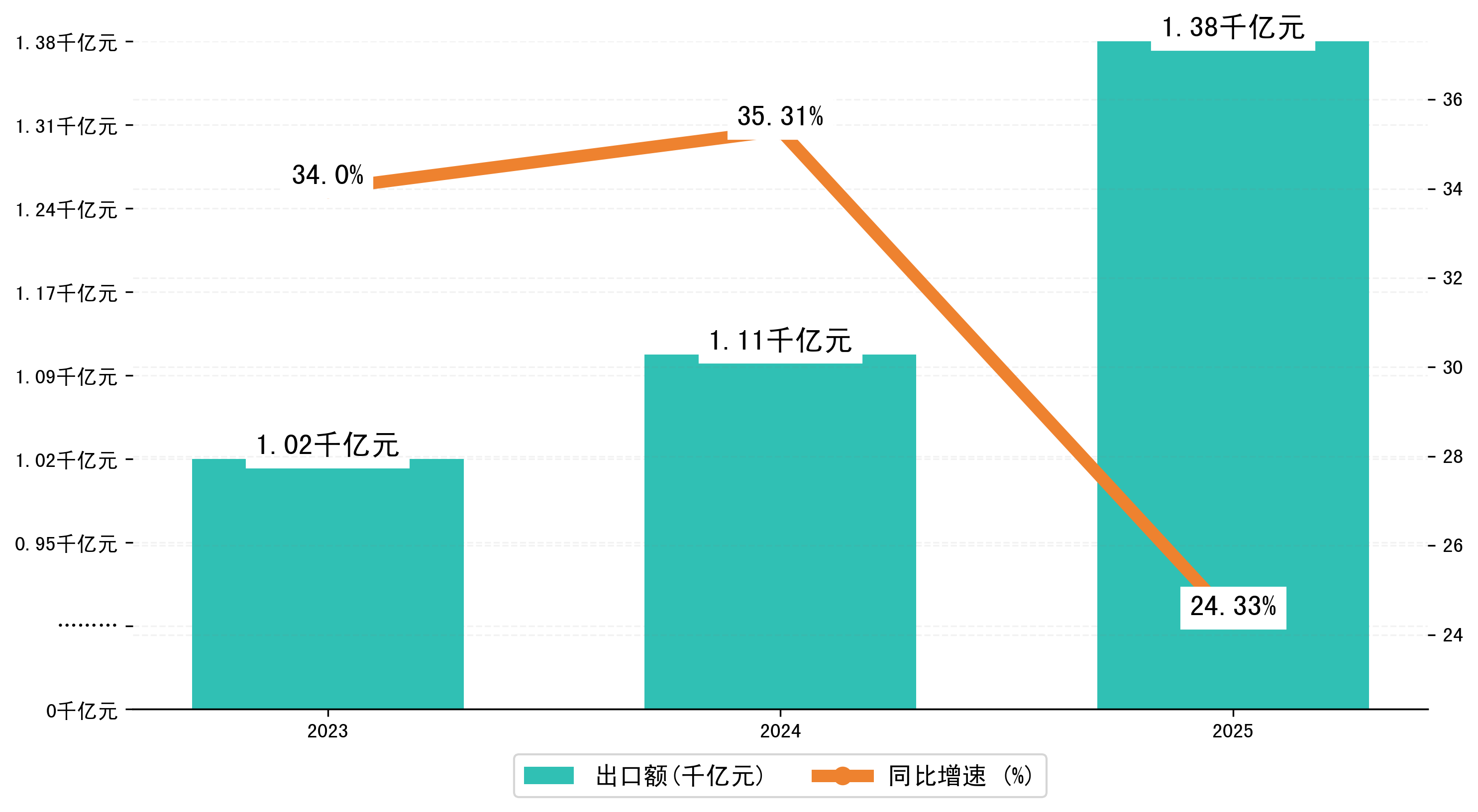 以人民币计,2025年1-9月济南市出口额为1382,6421.1652万元,相比上年同期增加了270,5648.5186万元,同比增加了24.20%。
