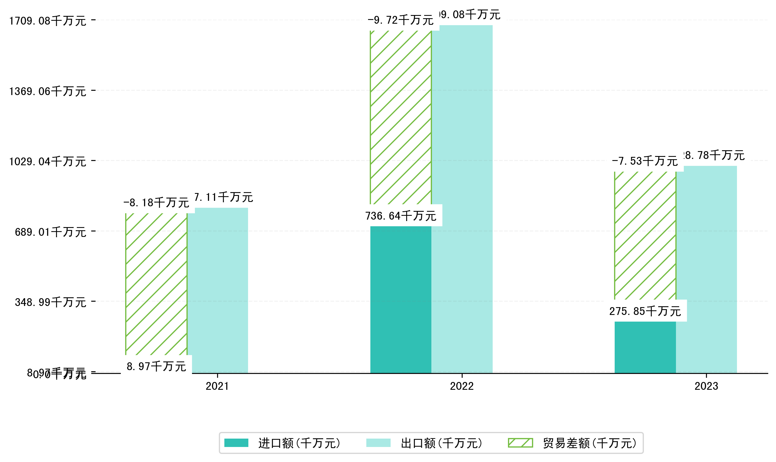 以人民币计,2023年1-12月景德镇市贸易差额为75,2925,4301万元(贸易顺差),相比上年同期减少了21,9518,0088万元,同比减少-22.57%。
