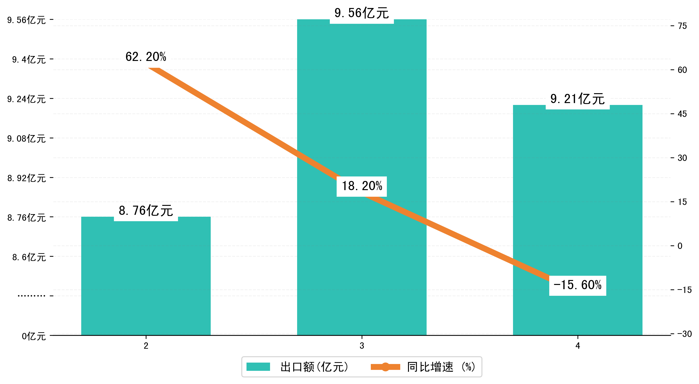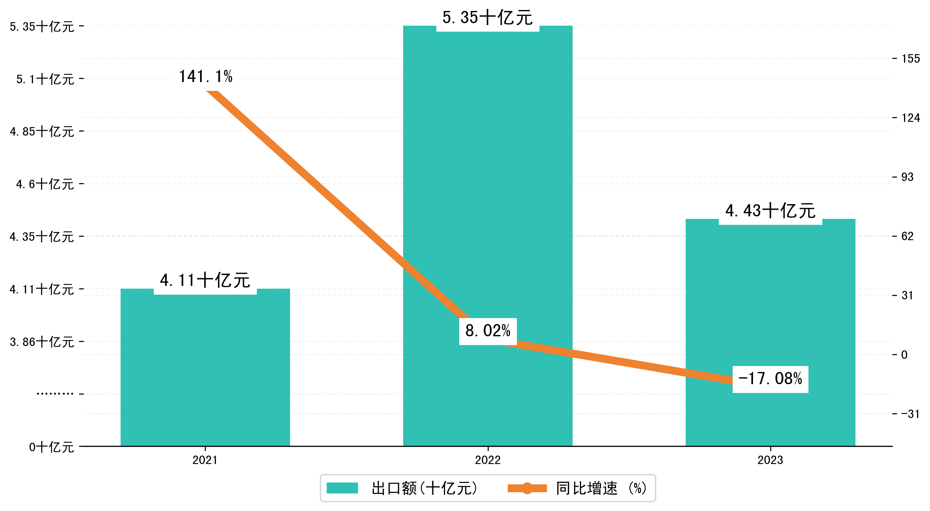 以人民币计,2023年1-4月常德市出口额为44,3428.4988万元,相比上年同期减少了9,1345.6319万元,同比减少了-15.60%。