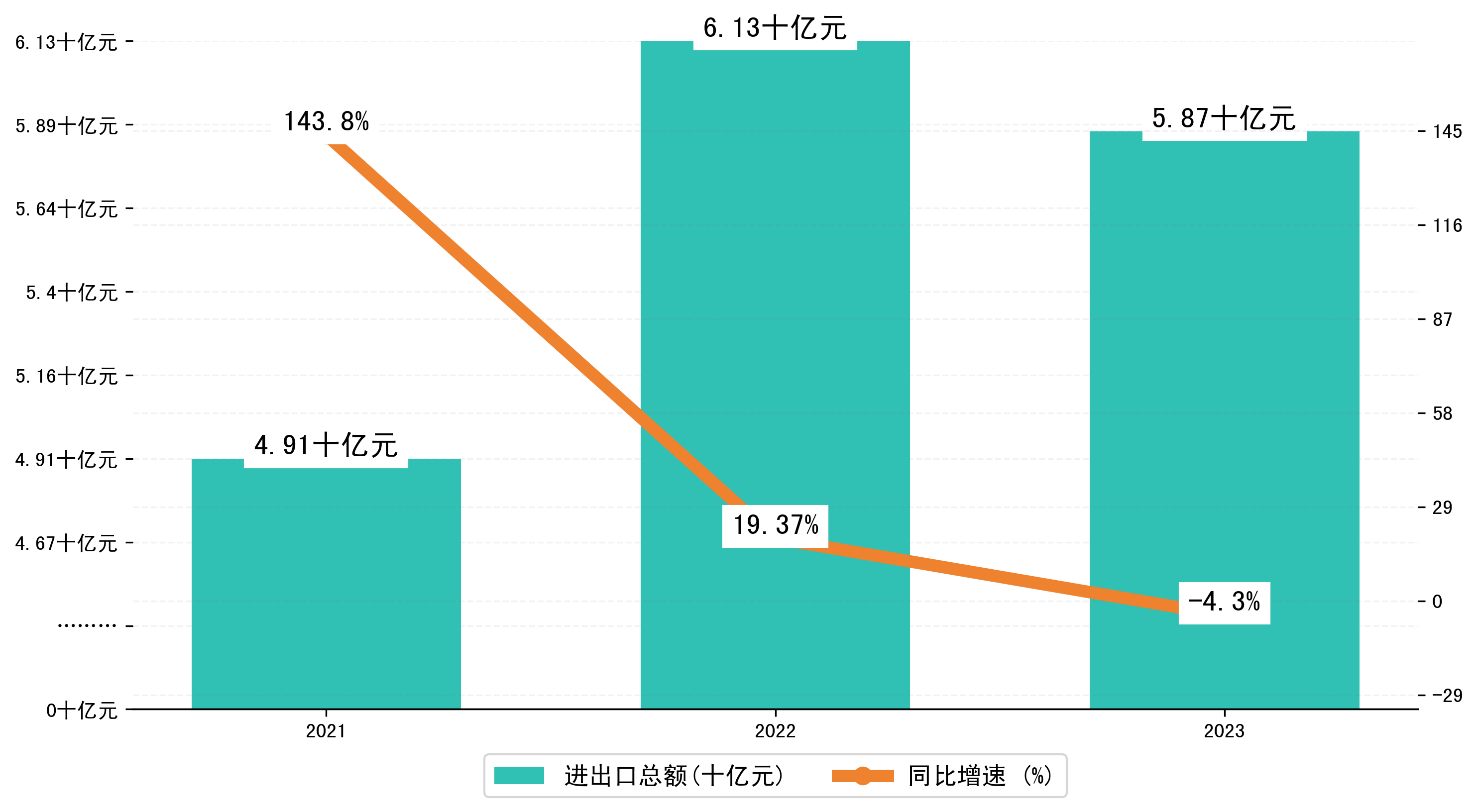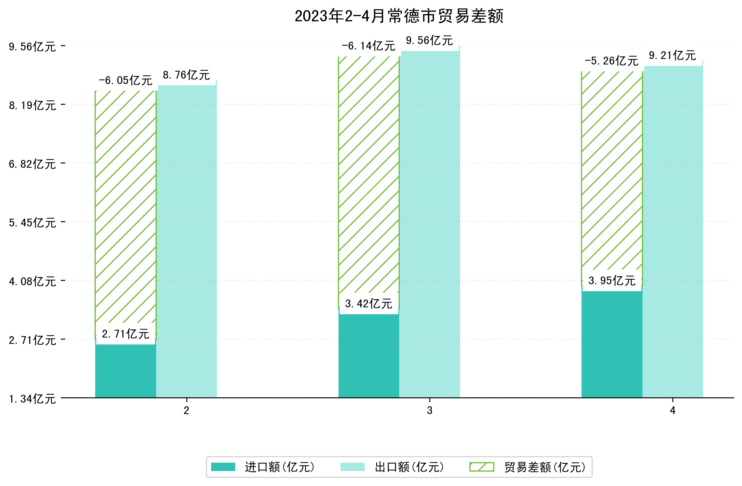 以美元计,2023年1-4月常德市贸易差额为4,3524,5849万美元(贸易顺差),相比上年同期减少了2,8214,2990万美元,同比减少-39.33%。