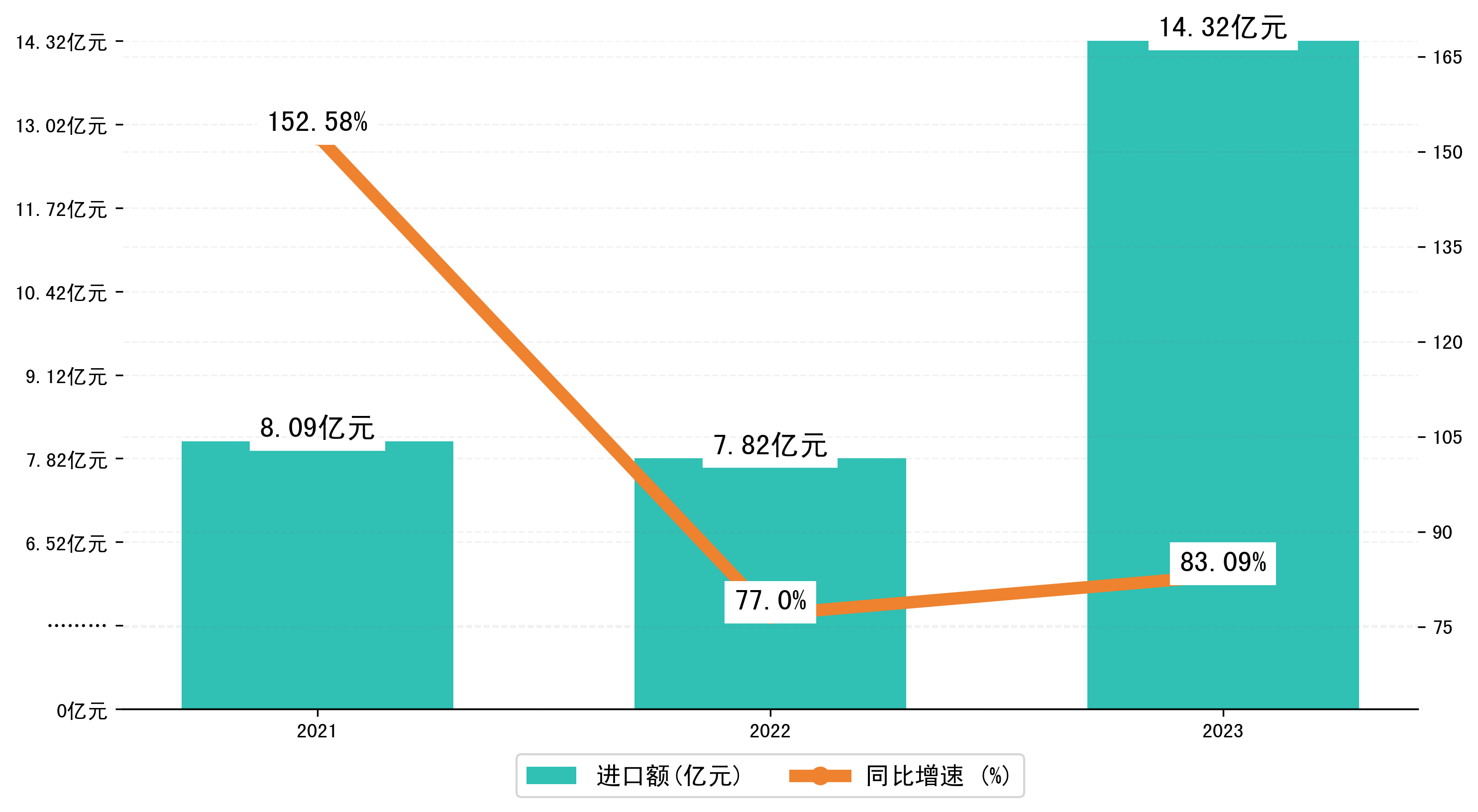 以美元计,2023年1-4月常德市进口额为2,0832.1073万美元,相比上年同期增加了8564.8843万美元,同比增加69.80%。