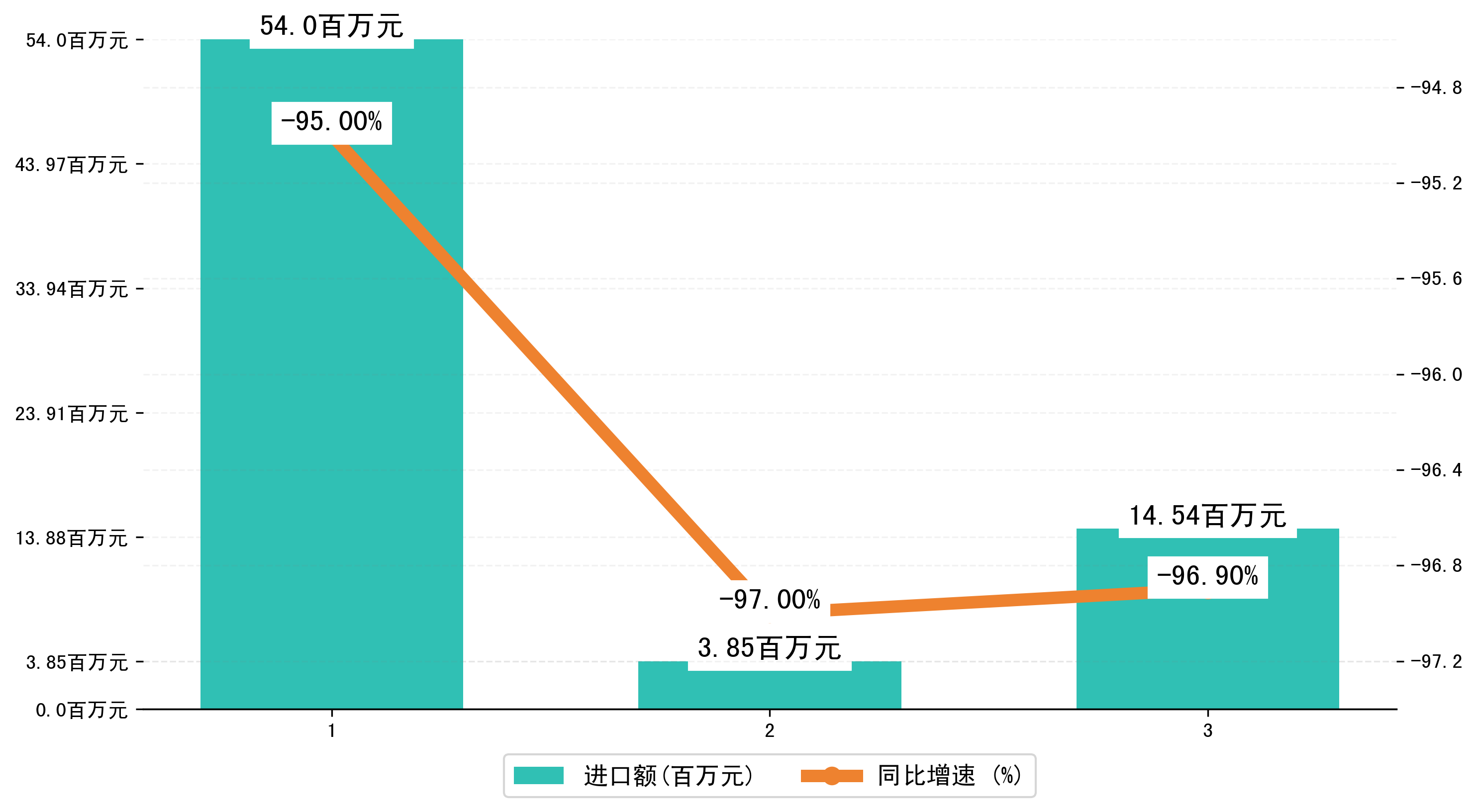 以人民币计,2024年3月景德镇市进出口总额为5,4622.0555万元,相比上月增加了1,6077.1182万元;相比上年同期减少了16,5125.6908万元,同比减少了-75.50%。