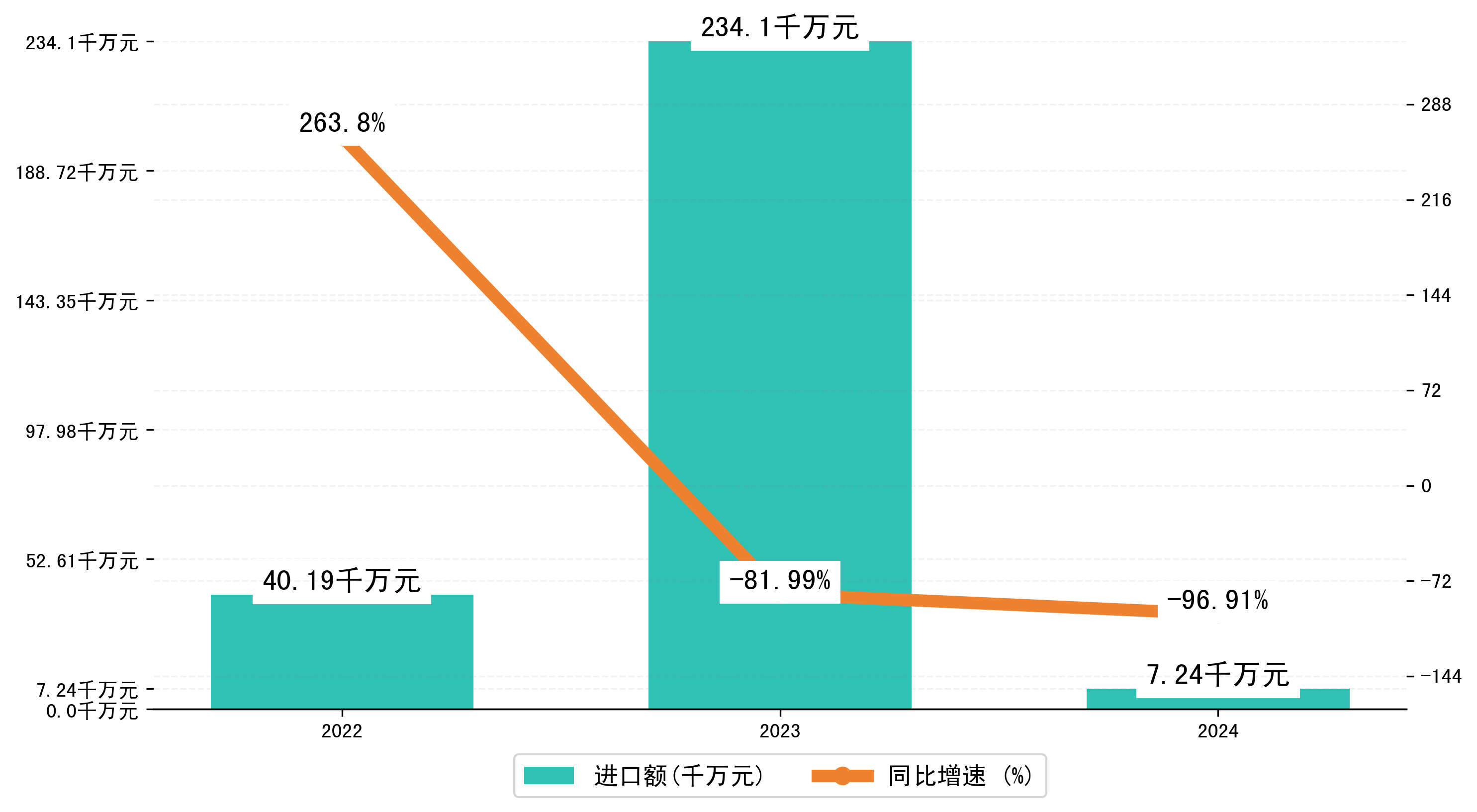 以人民币计,2024年1-3月景德镇市进口额为7238.9296万元,相比上年同期减少了22,6857.3806万元,同比减少了-96.90%。