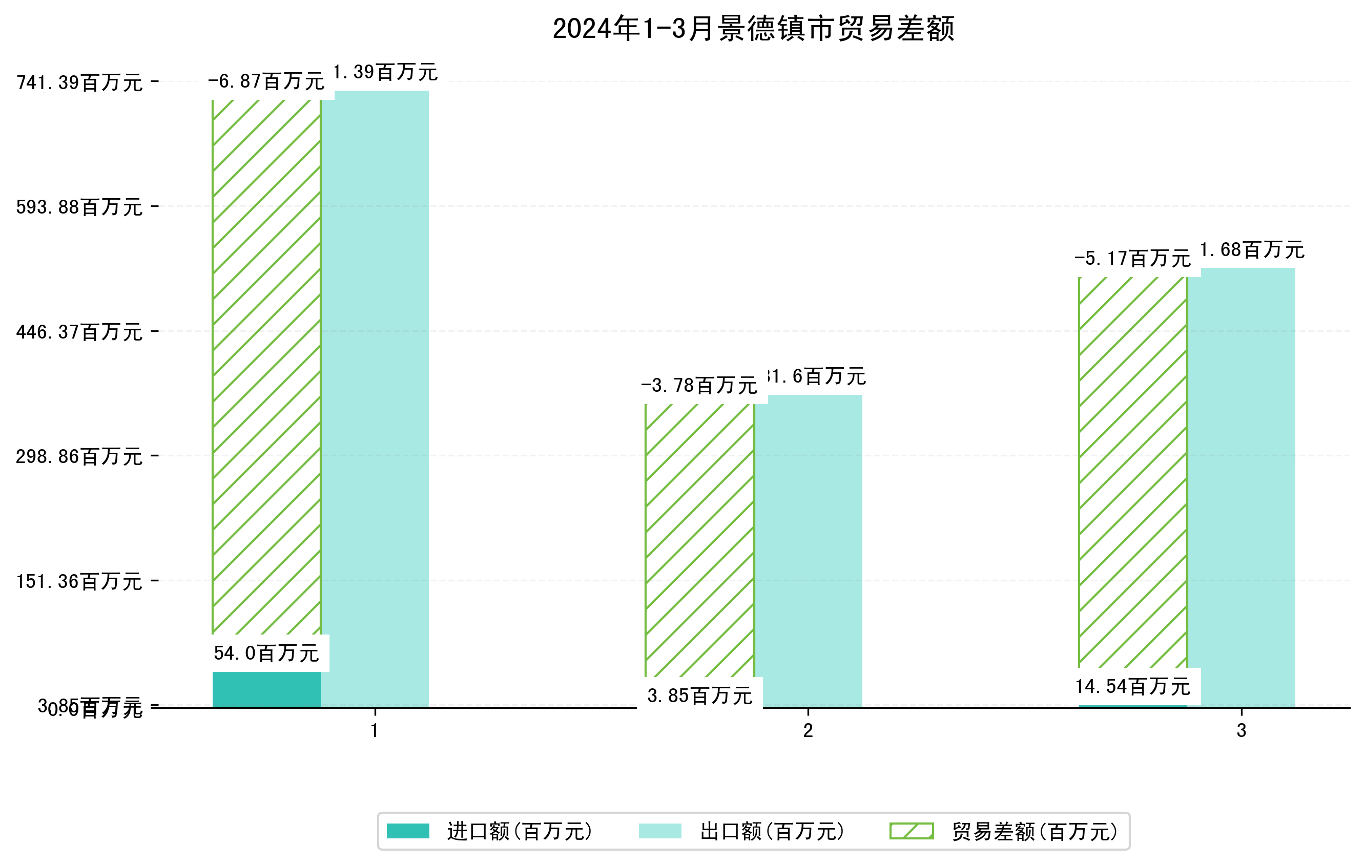 2024年3月景德镇市进出口总额及进出口差额统计分析