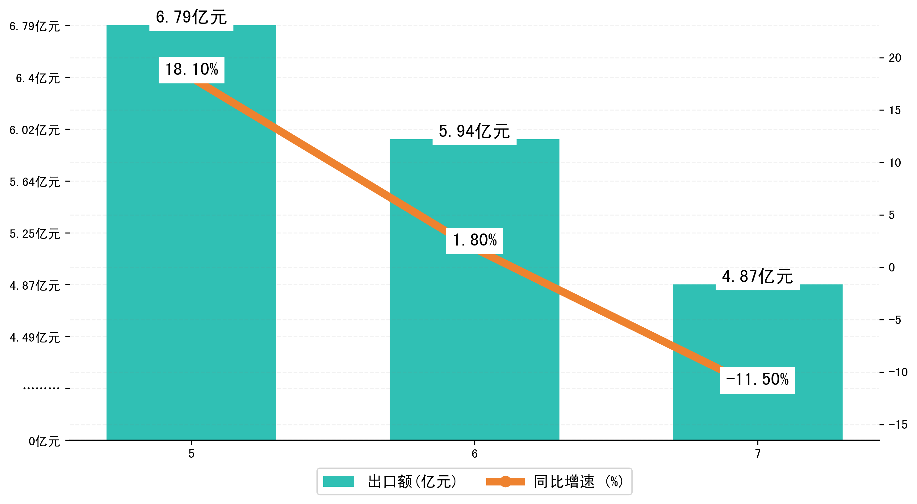 一、2023年7月景德镇市单月出口总额及进出口差额统计分析
