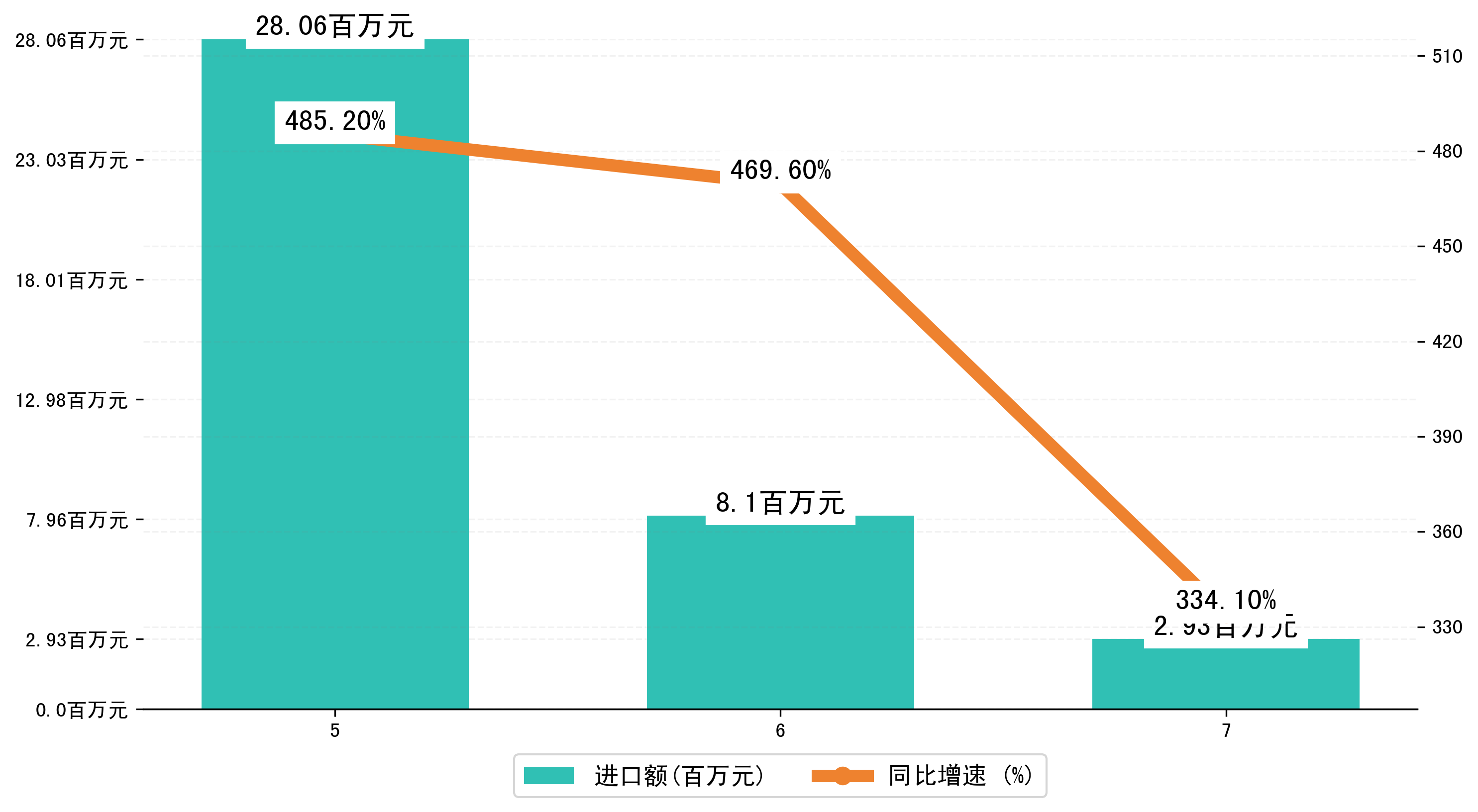 以人民币计,2023年7月景德镇市进口额为292.9989万元,相比上月减少了516.5787万元;相比上年同期减少了1,3415.3439万元,同比增加了334.10%。