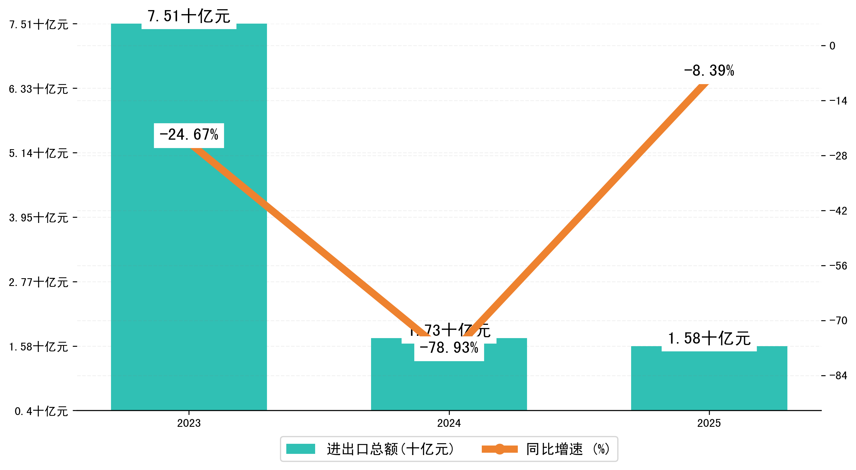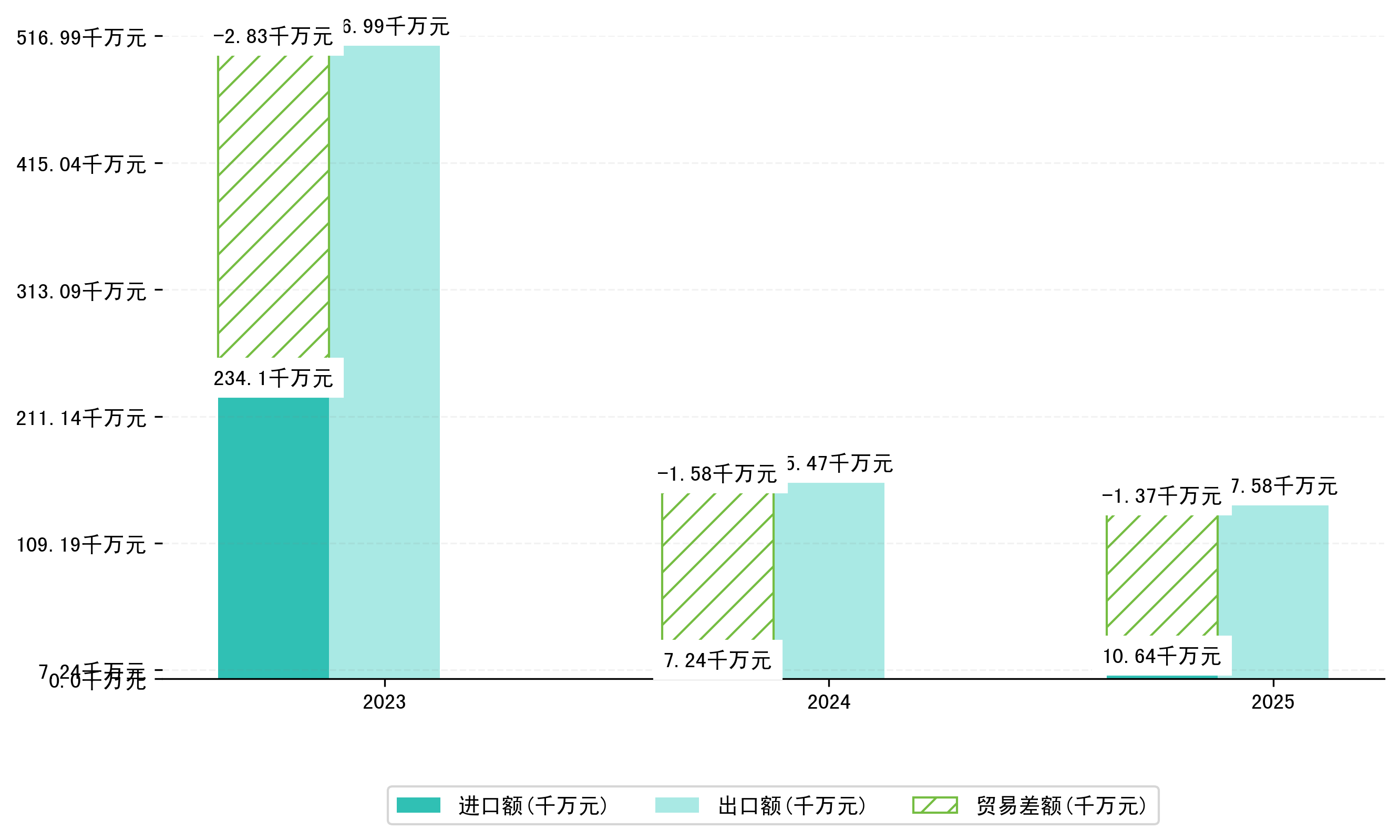 以人民币计,2025年1-3月景德镇市贸易差额为13,6937,0128万元(贸易顺差),相比上年同期减少了2,1291,4362万元,同比减少-13.46%。