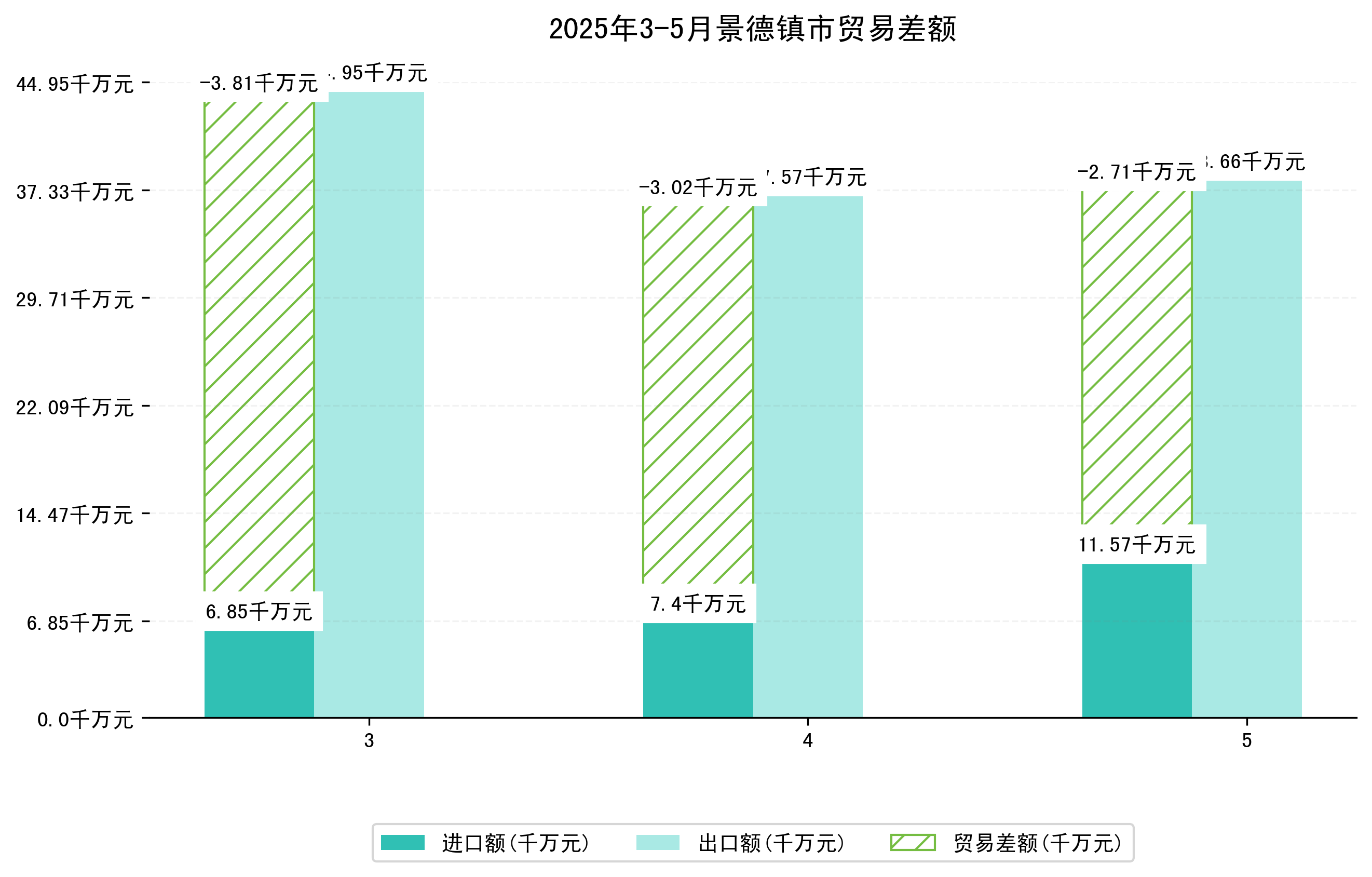 2025年5月景德镇市进出口总额及进出口差额统计分析
