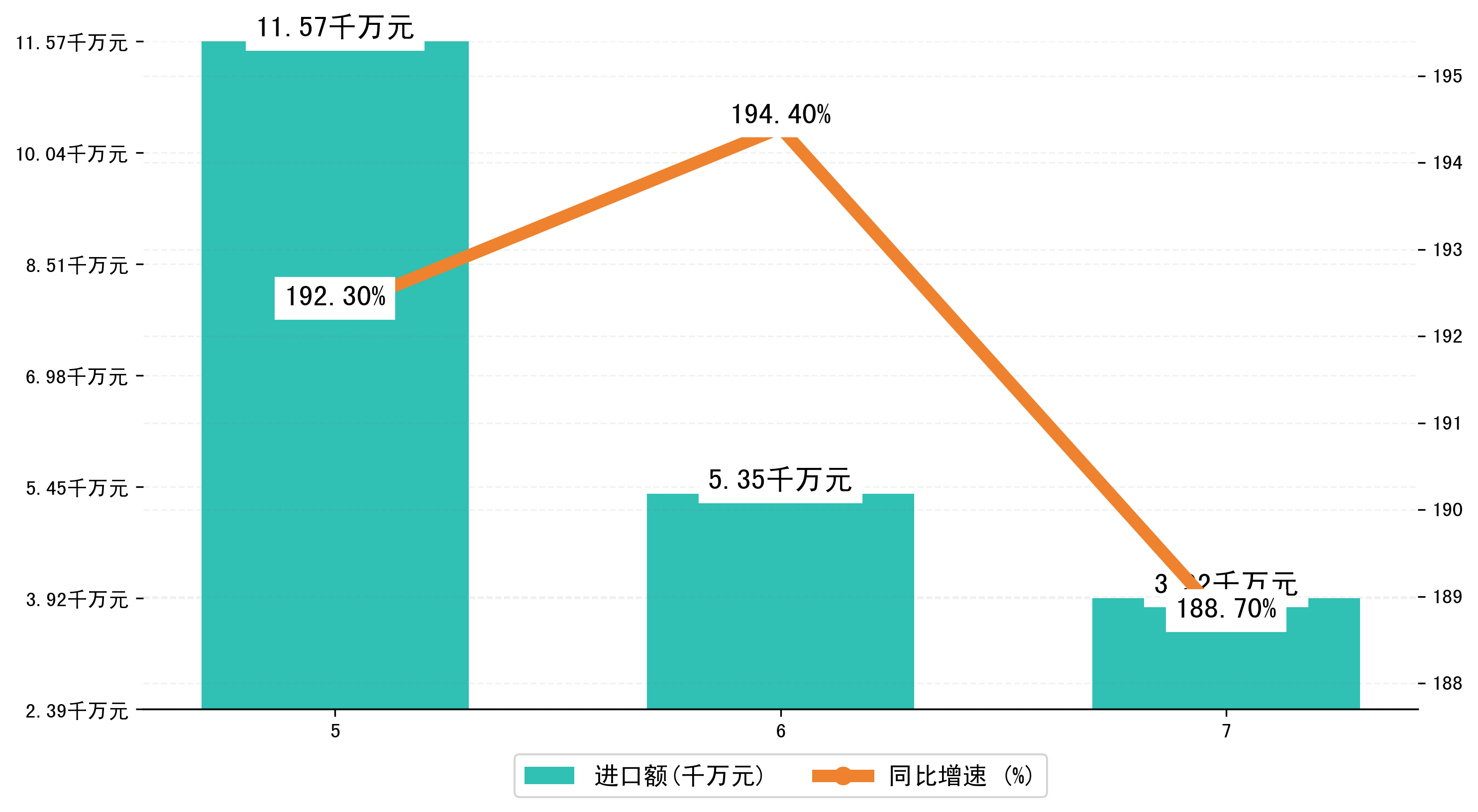 以美元计,2025年7月景德镇市进口额为546.004万美元,相比上月减少了198.4766万美元;相比上年同期增加了322.5156万美元,同比增加185.10%。