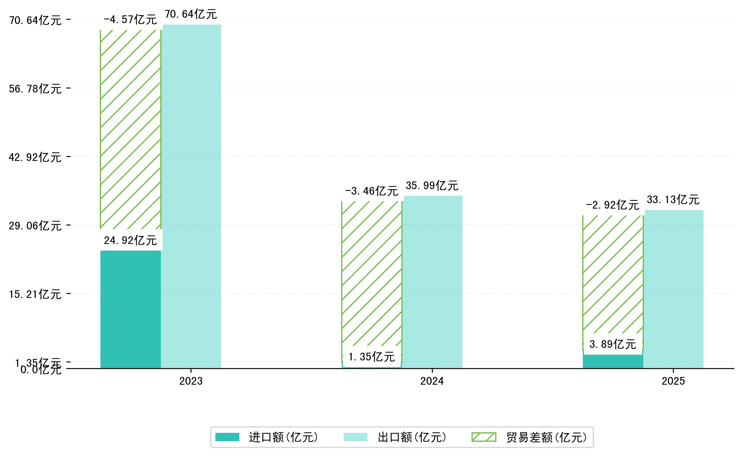 以美元计,2025年1-7月景德镇市贸易差额为4,0704,8206万美元(贸易顺差),相比上年同期减少了8051,2664万美元,同比减少-16.51%。
