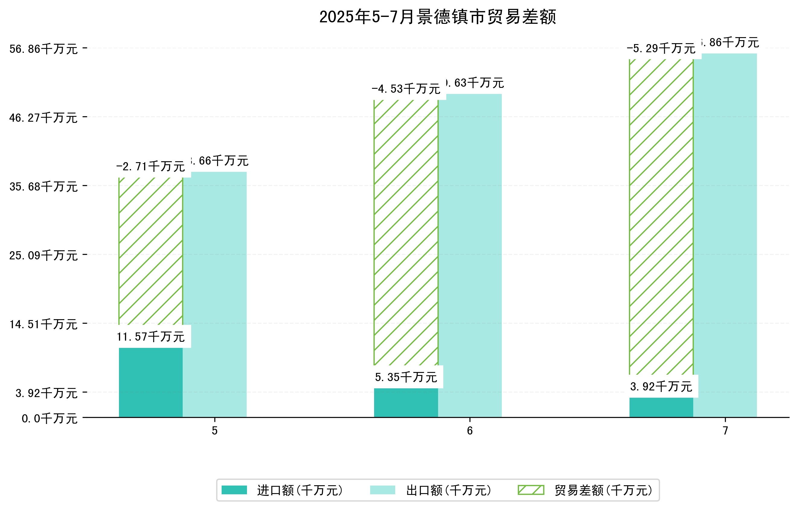 一、2025年7月景德镇市单月出口总额及进出口差额统计分析