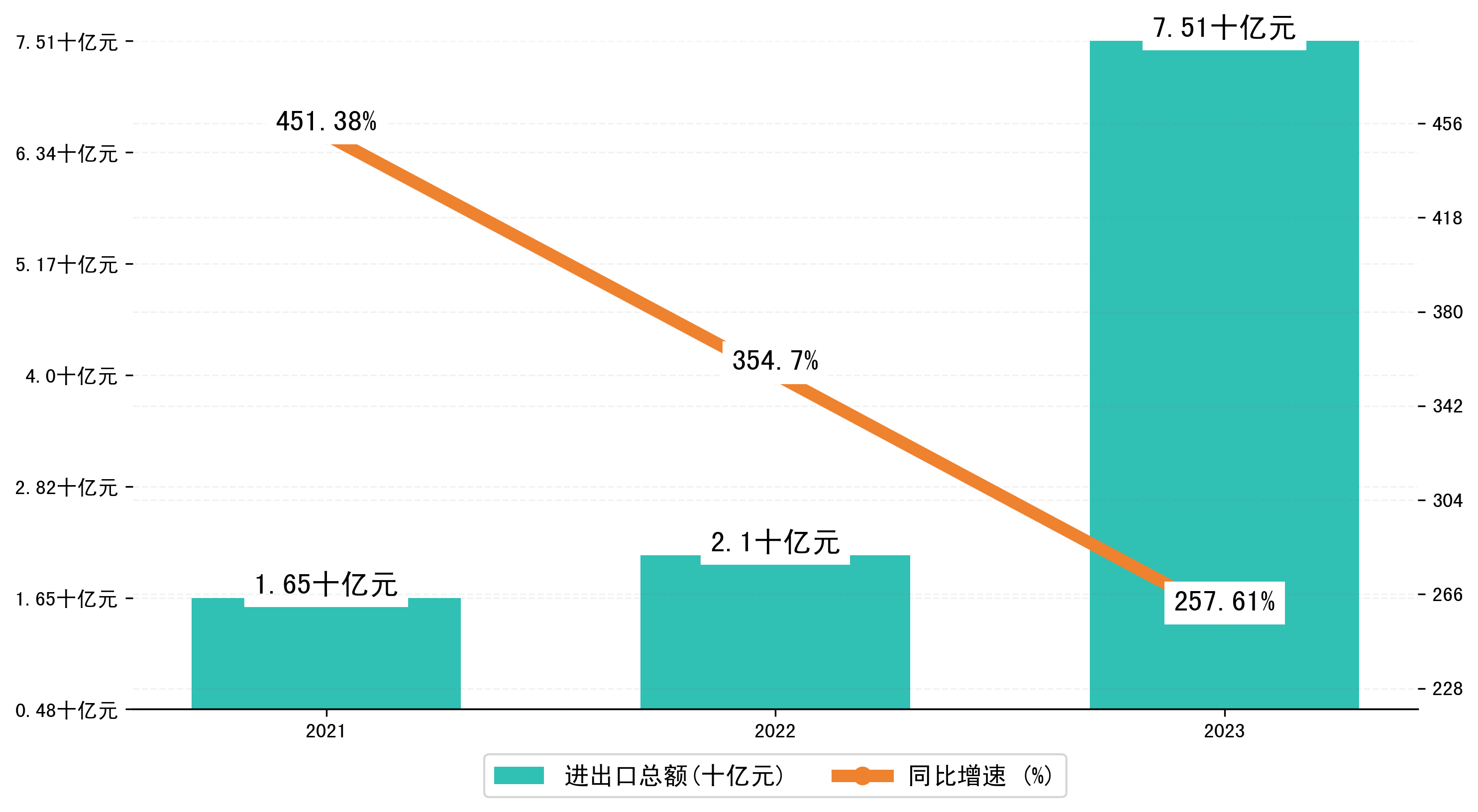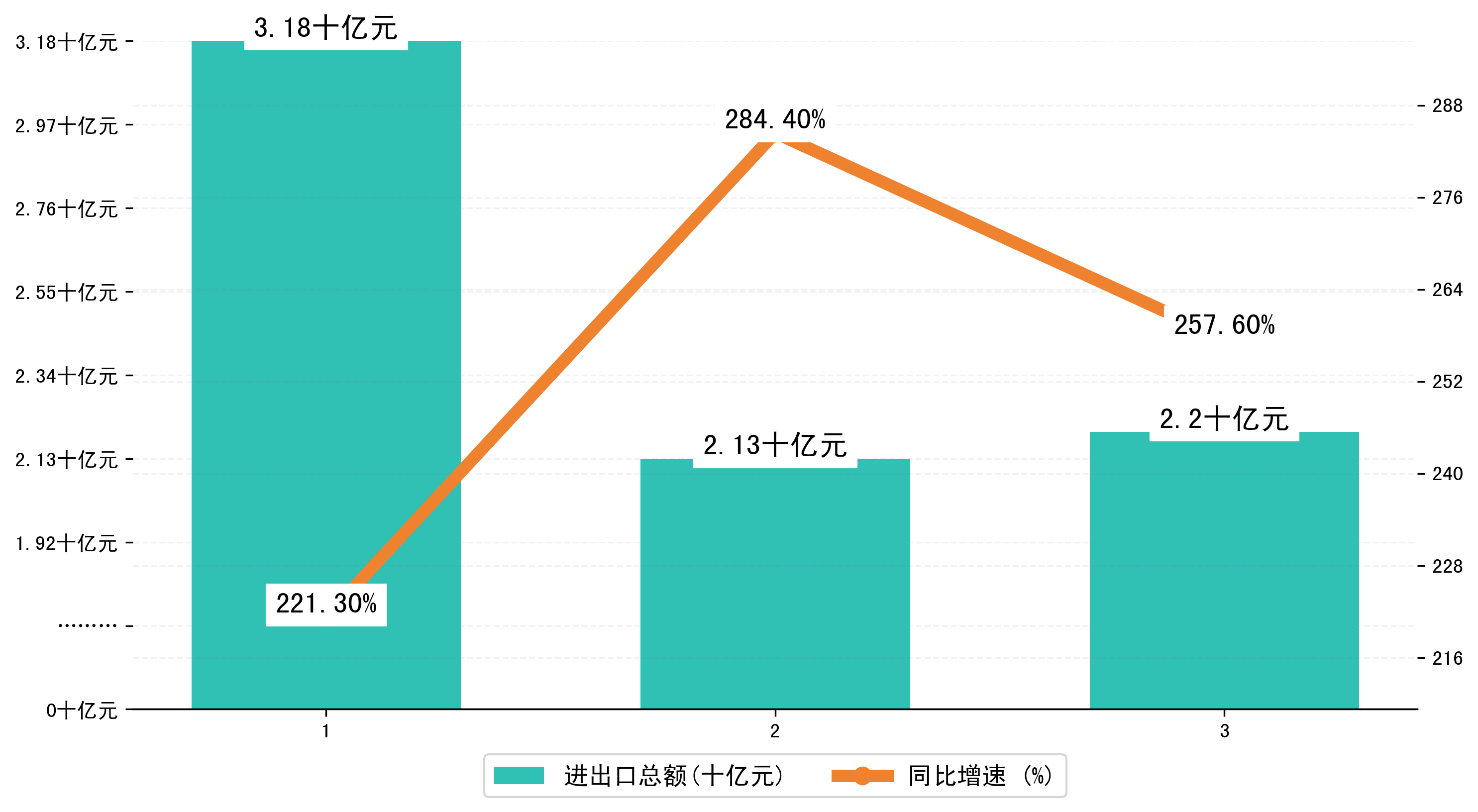 以人民币计,2023年3月景德镇市贸易差额为14,1493,8813万元(贸易顺差),相比上月增加了10,3715,2752万元,即1,4912,5694万美元;相比上年同期增加了7,5708,8426万元,同比增加115.09%。
