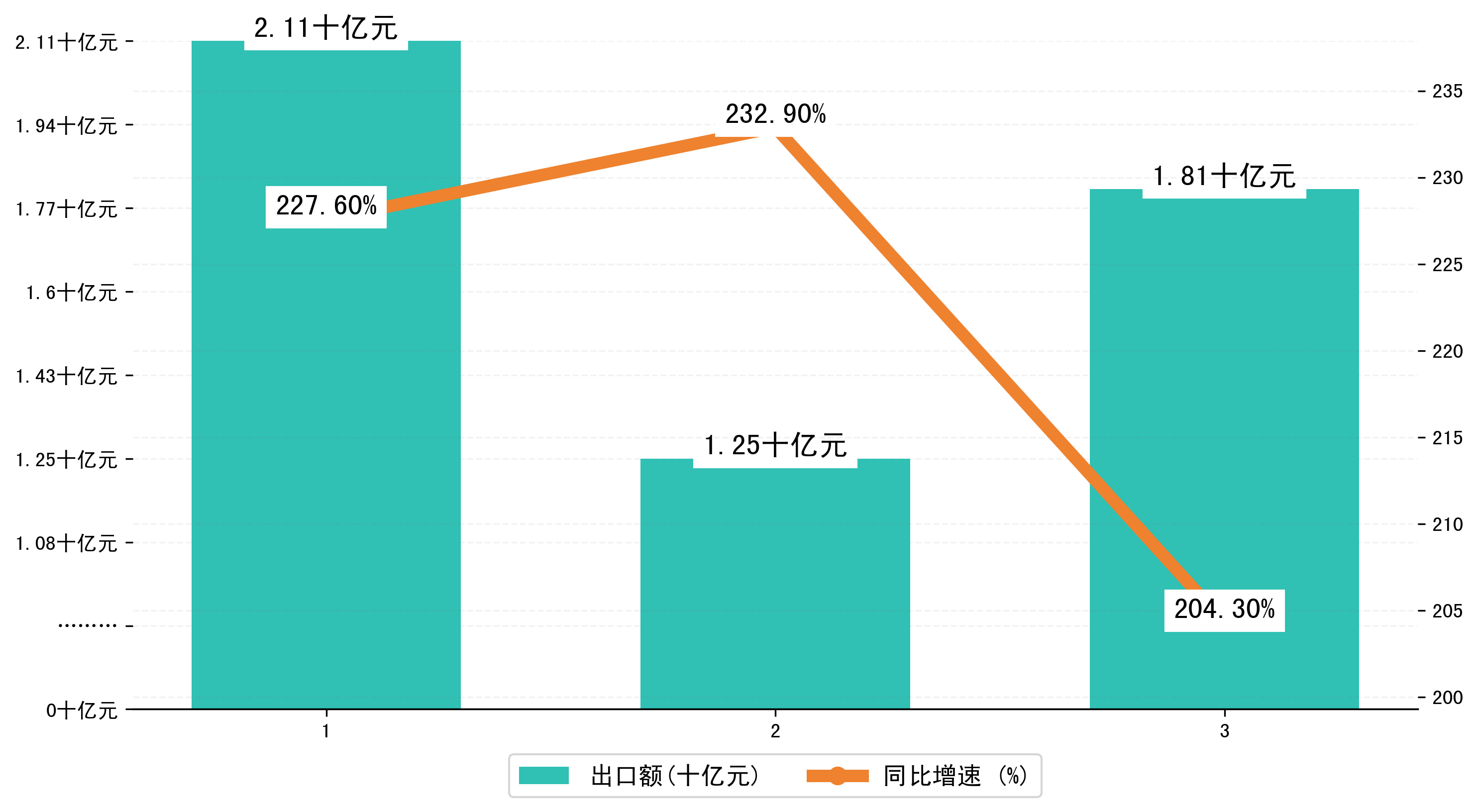 以美元计,2023年3月景德镇市贸易差额为2,0488,3933万美元(贸易顺差),相比上月增加了1,4912,5694万美元;相比上年同期增加了1,0130,3570万美元,同比增加97.8%。