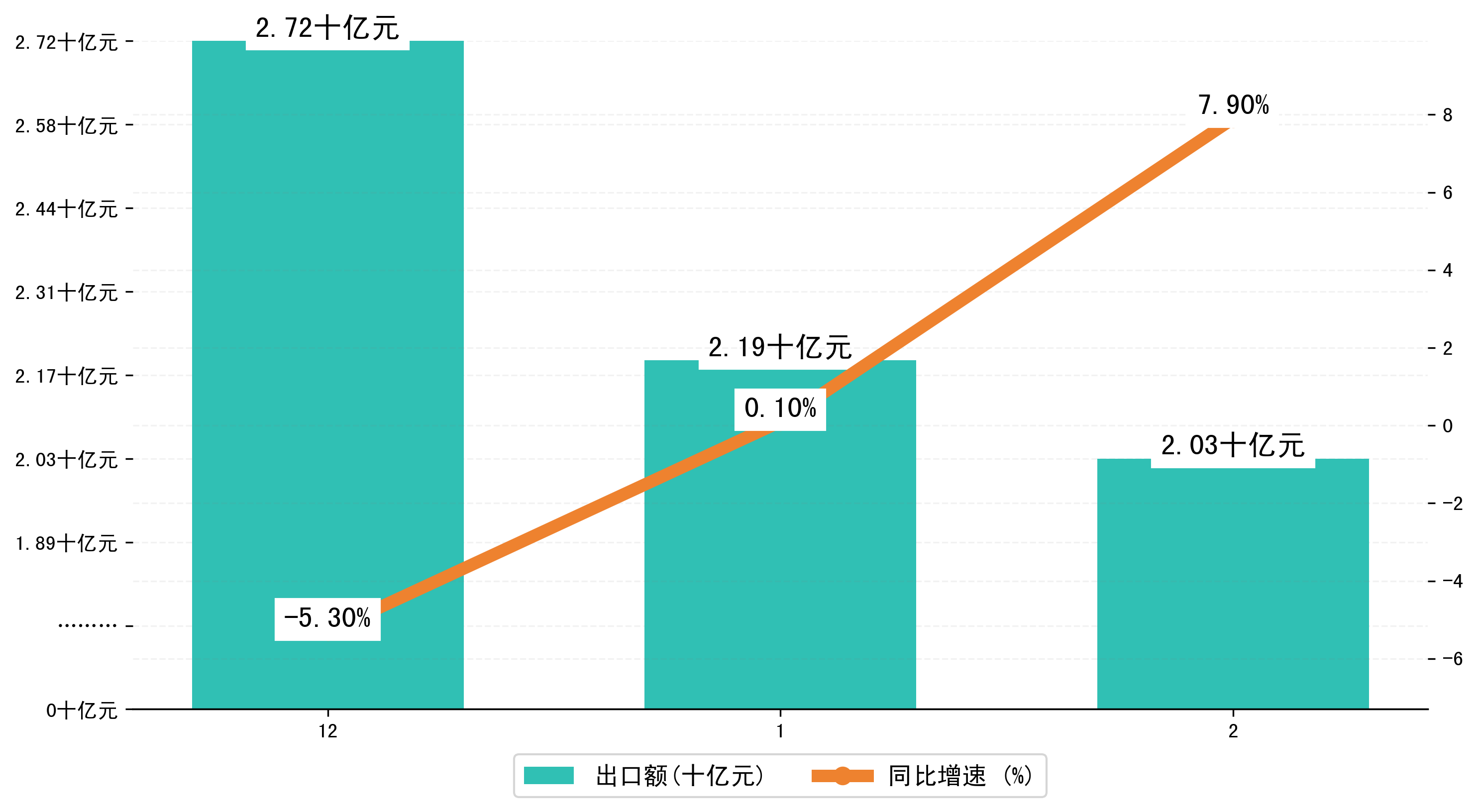一、2024年2月荆州市单月出口总额及进出口差额统计分析