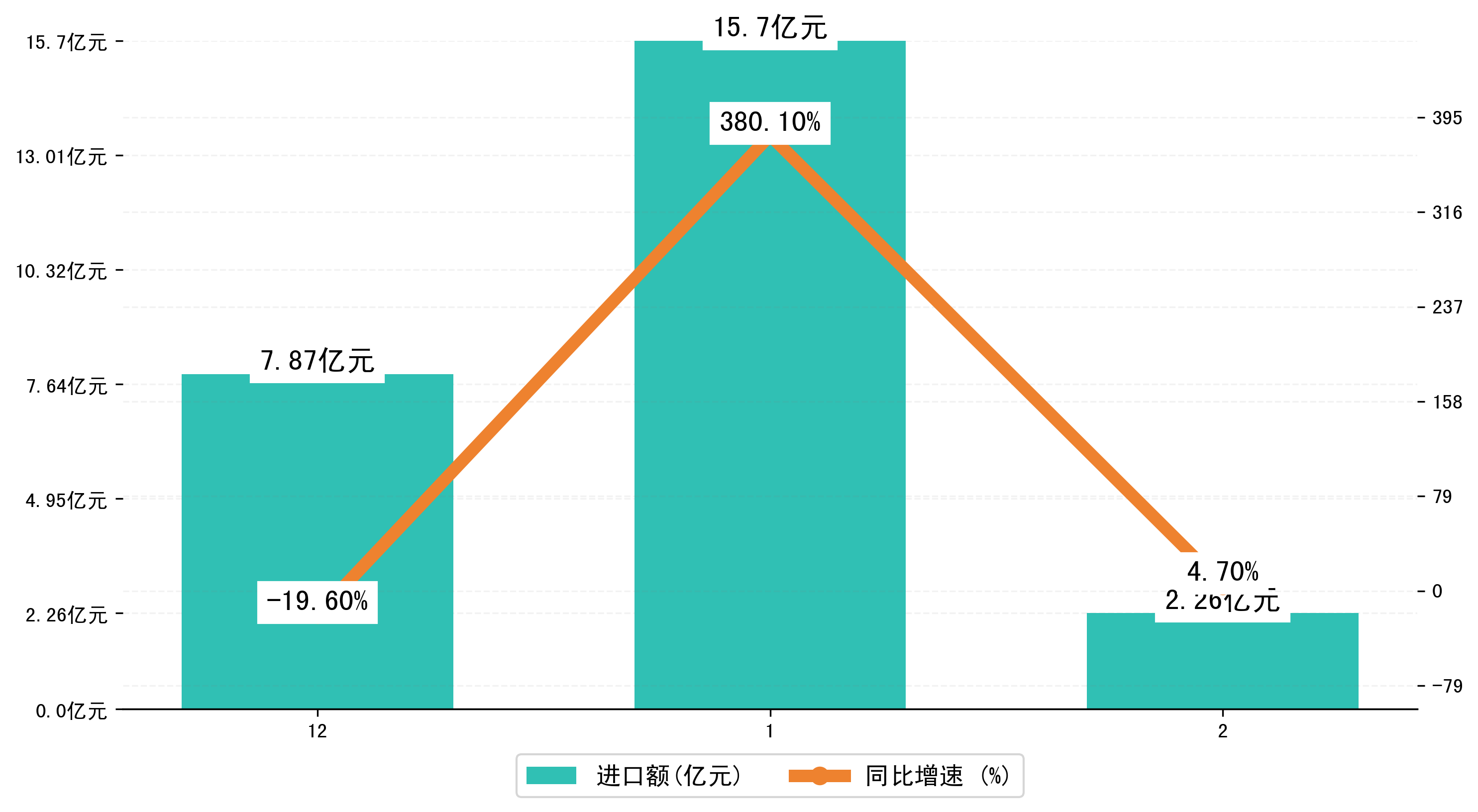 以美元计,2024年1-2月荆州市进口额为2,5345.8434万美元,相比上年同期增加了83.4732万美元,同比增加0.60%。