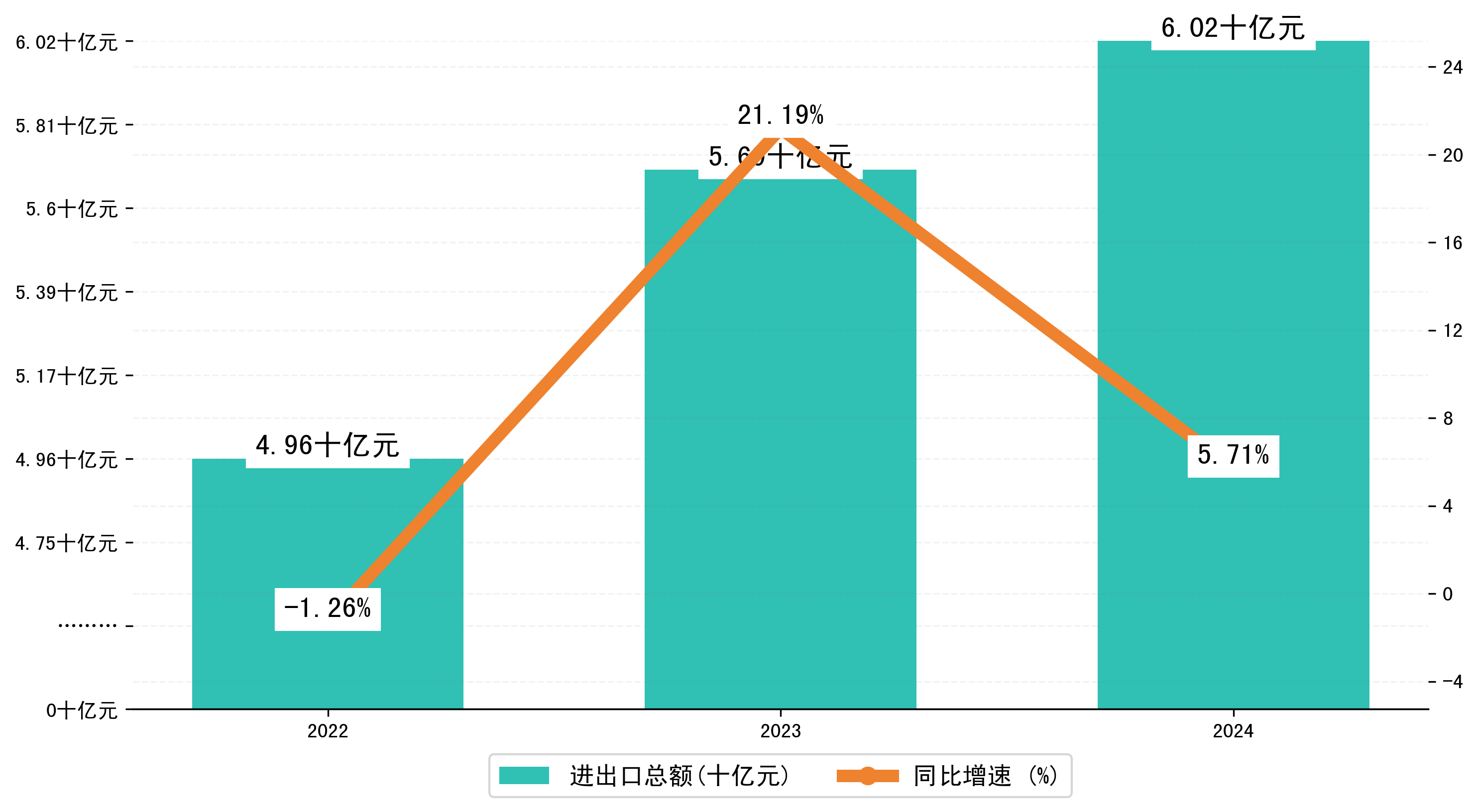 以人民币计,2024年1-2月荆州市进出口总额为60,1645.3824万元,相比上年同期增加了3,2489.4474万元,同比增加了6.90%。