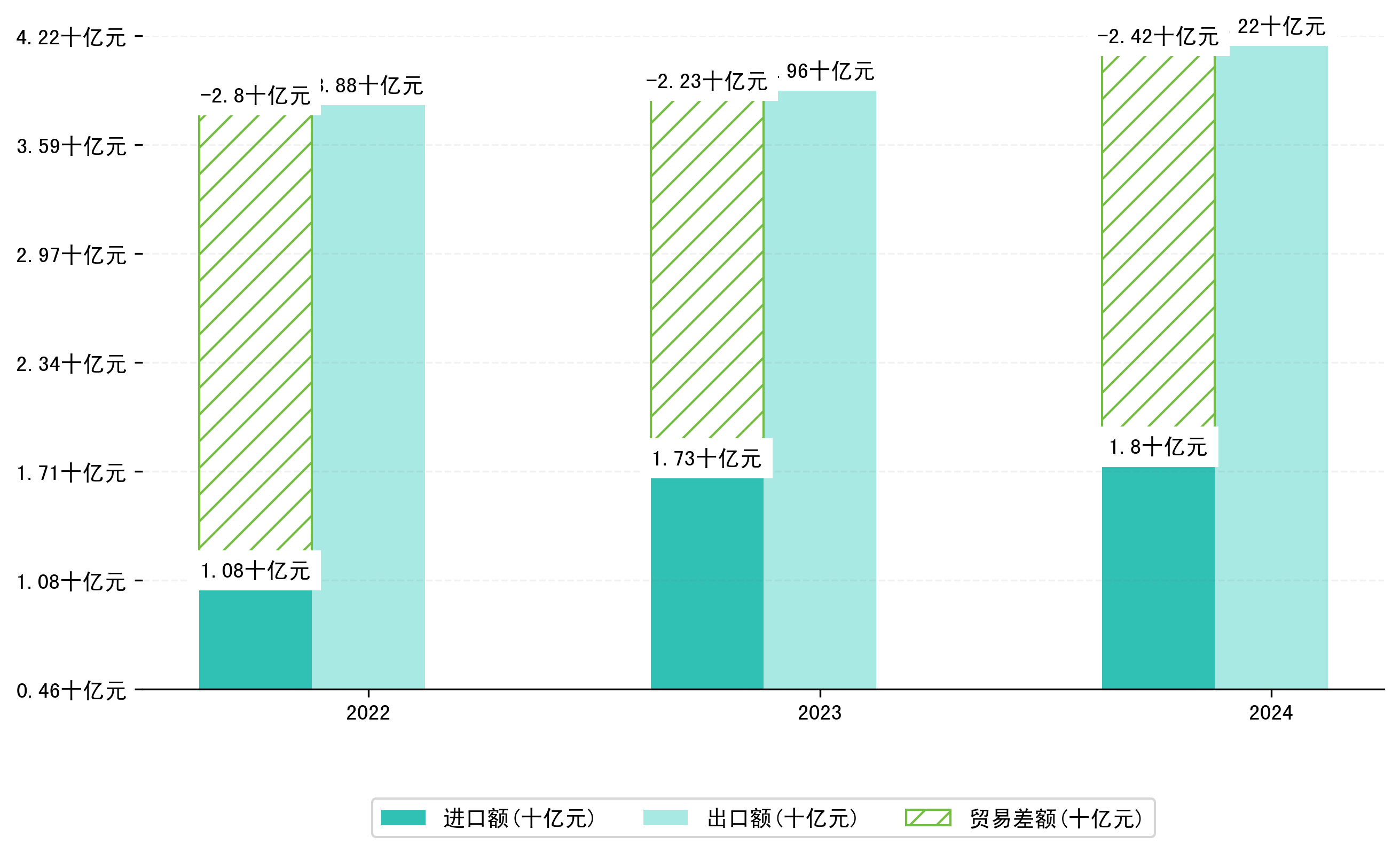 以人民币计,2024年1-2月荆州市贸易差额为24,2458,3991万元(贸易顺差),相比上年同期增加了1,9282,3289万元,同比增加8.64%。