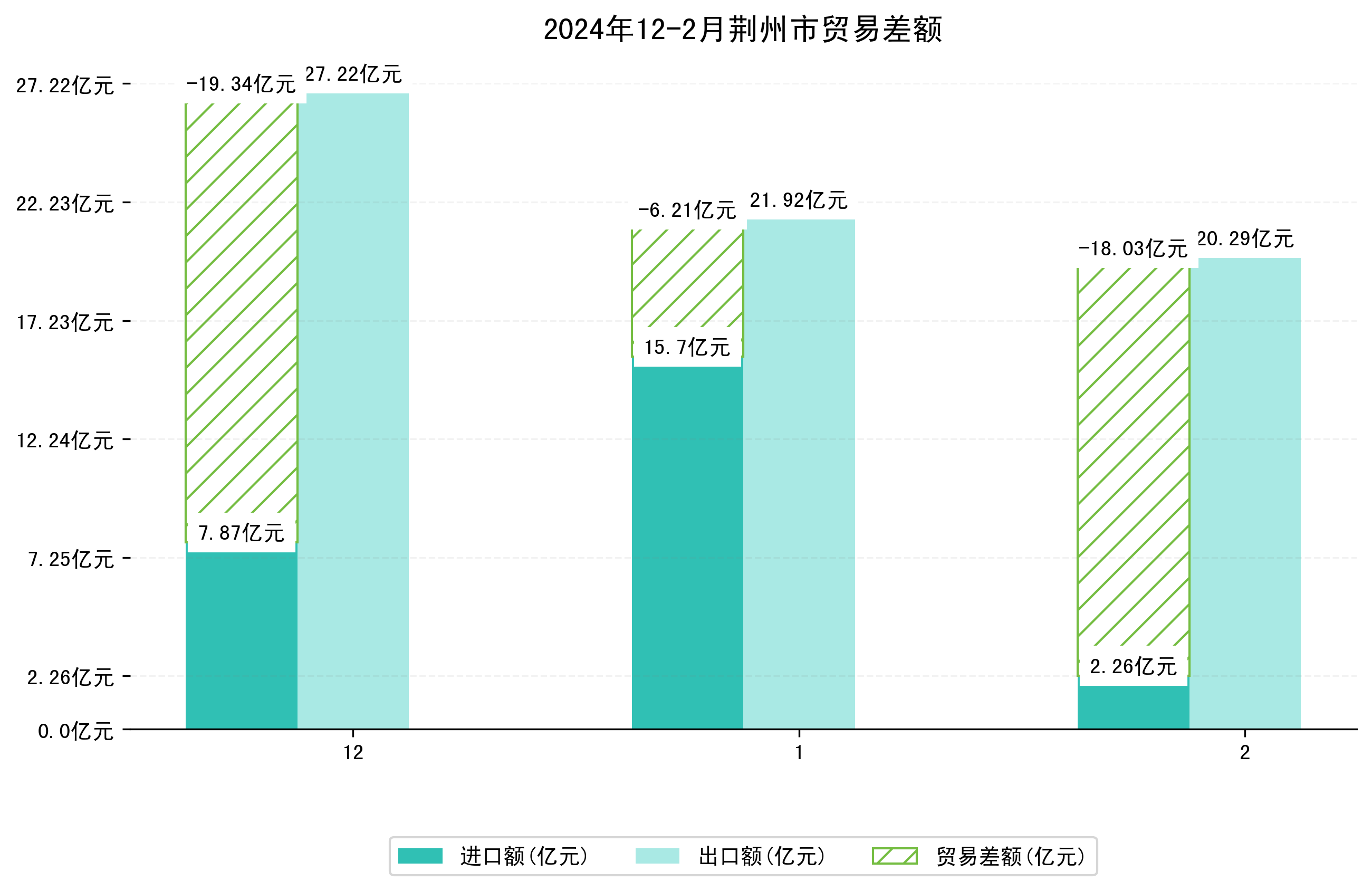 2024年2月荆州市进出口总额及进出口差额统计分析