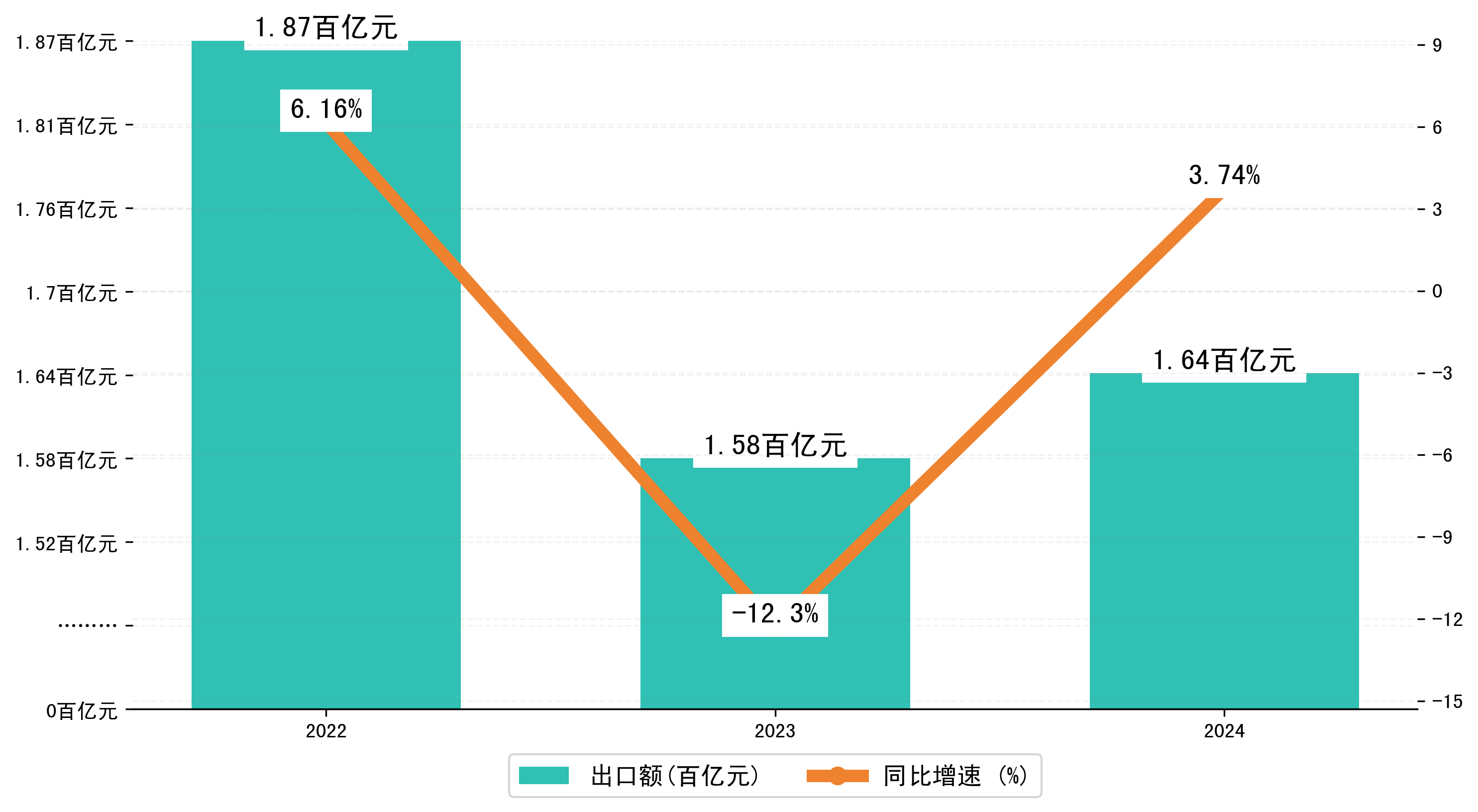 以人民币计,2024年1-8月荆州市出口额为164,1189.3374万元,相比上年同期增加了5,9135.6594万元,同比增加了4.00%。