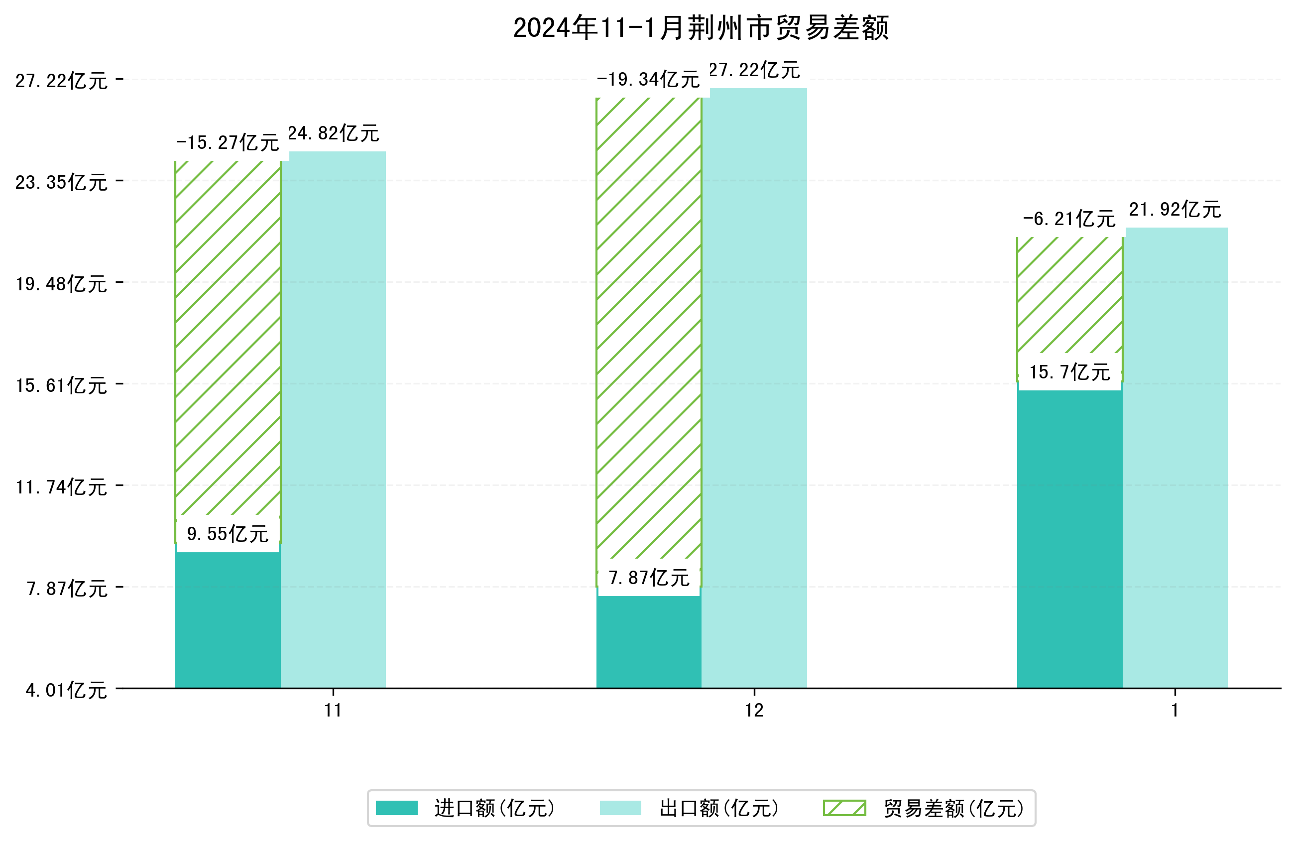 2024年1月荆州市进出口总额及进出口差额统计分析